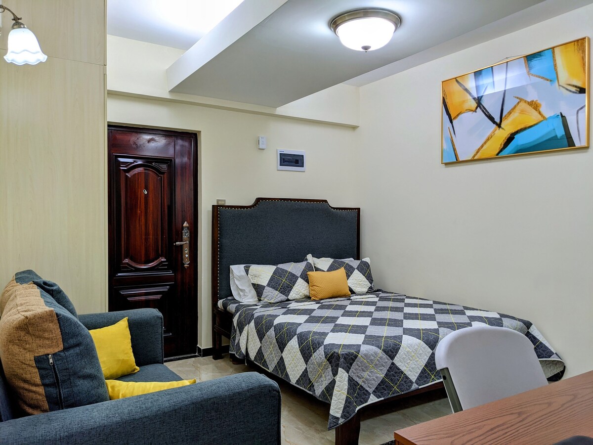 Rumah anda yang jauh dari rumah ialah apartmen studio yang terletak di pusat bandar di Westlands dengan kolam renang atas bumbung dan gimnasium serba lengkap. Jarak berjalan kaki ke pasar raya, restoran,pusat membeli-belah dan kehidupan malam Nairobi yang meriah. Apartmen ini berjarak 20 (ish) minit memandu dari lapangan terbang melalui lebuh raya. Apartmen ini mempunyai meja yang anda boleh bekerja dan berhampiran dengan beberapa ruang kerja bersama. Ia juga berhampiran dengan pusat bandar dan akses mudah ke dan dari tempat-tempat berhampiran yang anda mungkin mahu lihat seperti Limuru,Nakuru dan Naivasha.