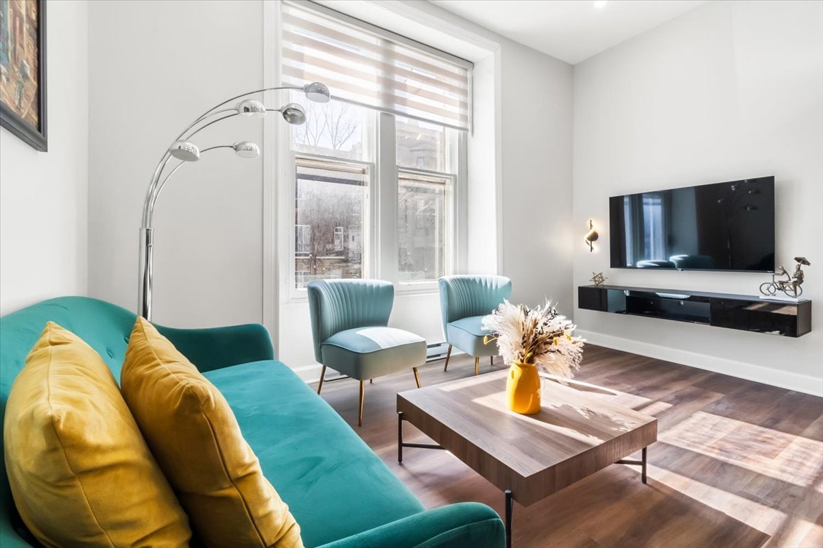 Ultra-modern two-bedroom corner unit with stunning views of the bustling street of Saint-Denis. This is among a collection of condos built from the ground up to be fully licensed vacation homes for luxury living by award-winning designers. Located in the heart of Le Plateau-Mont-Royal, yet a couple minutes walk to Downtown Montreal. Stone's throw away from hundreds of boutiques, shops, cafes, restaurants, bars, and clubs. 15 seconds walk from public transit stops. Easy daily parking.
