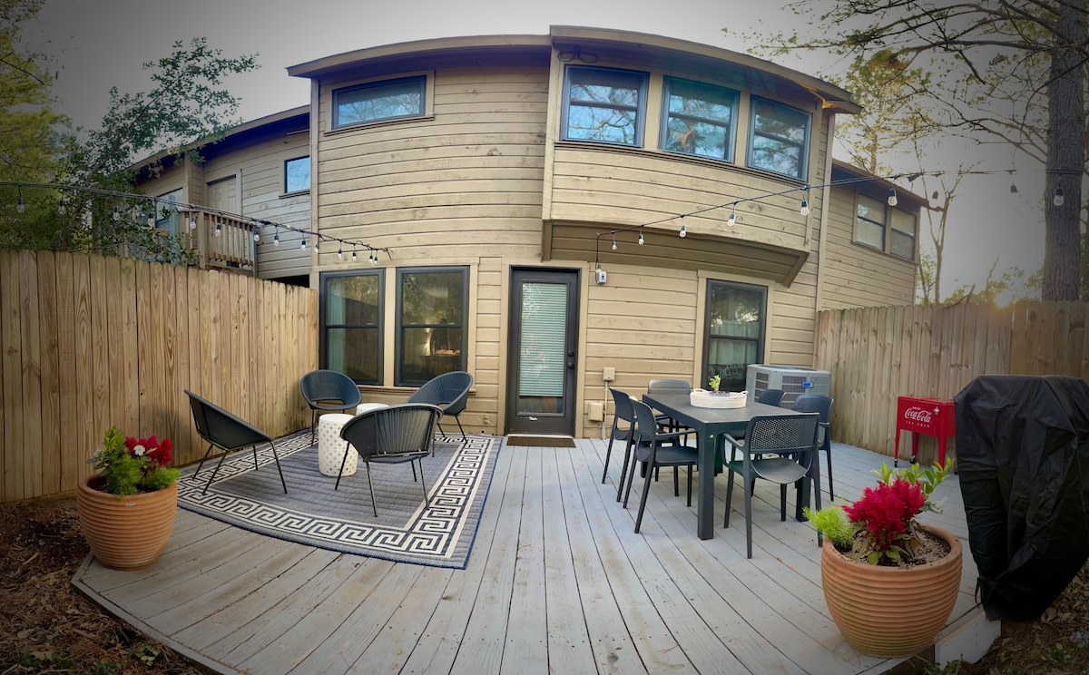 🍃Casa Granada adalah rumah percutian yang sesuai untuk keluarga dan kumpulan - moden dan selesa! Pintu kaca gelongsor lantai ke siling kami, mendedahkan halaman belakang peribadi kami yang besar. Menjadikan rumah ini, benar-benar unik. Hanya beberapa minit dari The Woodlands dan kedai-kedai di Market Street. Nikmati malam dengan lampu rona Philips kami untuk menetapkan suasana yang sempurna. Anda juga boleh bekerja dari jauh atau ke gimnasium rumah! WIFI/TV/TEMPAT LETAK KERETA/AC PUSAT/MESIN BASUH/PENGERING/PATIO/GIMNASIUM **Untuk gril: mesti diminta 24 jam sebelum daftar masuk