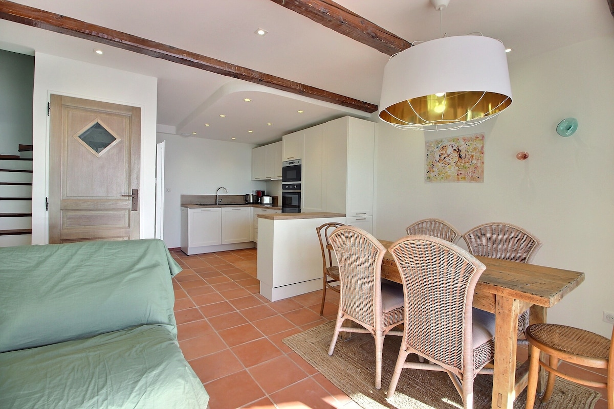 Terletak di tengah-tengah kampung Théoule sur Mer. Anda akan berjalan kaki 5 minit dari pantai berpasir, 30 minit dari lapangan terbang Nice, 10 minit dari stesen kereta api Théoule sncf, 30 minit dari bandar Saint Raphaël dan 15 minit dari Cannes. Apartmen ini telah diperbaharui sepenuhnya. Mempunyai keluasan 53m ² dengan bilik tidur dan bilik mandi berasingan. Apartmen ini lengkap, berhawa dingin dan mempunyai akses WiFi (fiber optic). Tetamu juga boleh menikmati teres persendirian dan ruang letak kereta persendirian.