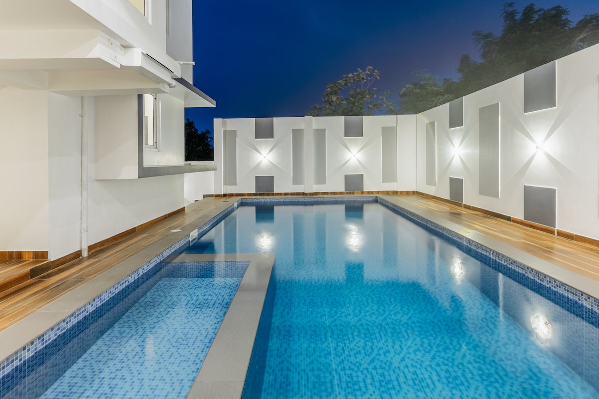 Vila 5BHK persendirian mewah di tepi pantai untuk keluarga & rakan-rakan anda bercuti dari bandar yang sibuk. Ia berjarak 2 minit berjalan kaki dari pantai yang boleh diakses melalui pintu pagar persendirian komuniti. .Dapur yang dilengkapi dengan dapur induksi, ketuhar gelombang mikro dan peti sejuk mungkin tidak sesuai untuk memasak untuk seluruh tetamu -LPG tidak tersedia. Makanan yang dimasak di rumah tempatan boleh diatur dengan kos tambahan. Keselamatan 24x7 dan pengawasan CCTV. Sandaran kuasa inverter sekiranya berlaku turun naik kuasa.