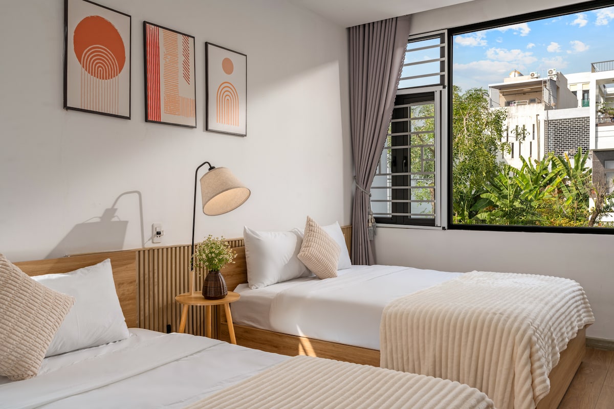 High-floor 2BR apartment with 3 comfy beds and breathtaking views of My Khe Beach. Just 2 minutes’ walk (150m) to the beach and access to a rooftop infinity pool with a stunning ocean view at a very affordable fee. Enjoy peaceful mornings watching the sunrise from your private balcony or bedroom. The space is modern, quiet, and romantic — perfect for families, friends, or couples. The friendly host is always ready to help you discover Da Nang’s best food, hidden gems, and local experiences.