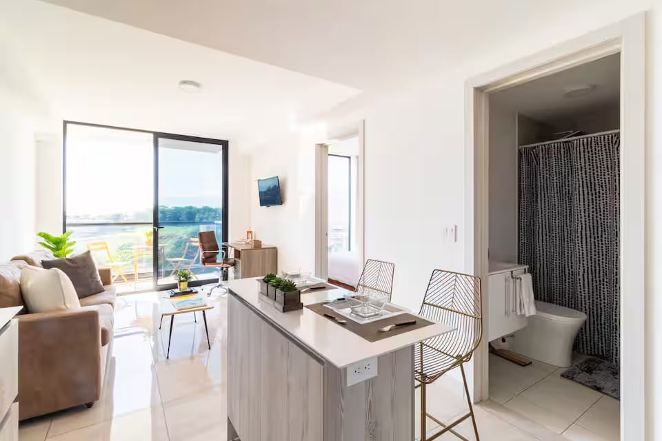 Elevate your stay in this stylish 1-bedroom apartment in the heart of La Sabana. Perfect for professionals & travelers, it features a private balcony with stunning views, AC, and high-speed WiFi. Located in San José’s safest, most upscale district, you’re steps from the National Stadium & Sabana Park. Enjoy elite building amenities: a semi-Olympic pool, gym, and 24/7 security. ✨ Private bedroom + separate living ✨ 20 mins to SJO Airport ✨ Walk to gourmet dining Pura Vida luxury!