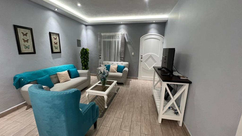 Acogedor apartamento ideal para familias o grupos de hasta 8 personas, ubicado a solo 15 minutos del IRTRA. Disfruta de un relajante jacuzzi y habitaciones con aire acondicionado para mayor comodidad. La cocina, el comedor y la sala están completamente equipados para que te sientas como en casa. Además, cuenta con WiFi gratuito y un área de azador perfecta para compartir. ¡Tu escapada perfecta te espera con todo lo que necesitas para descansar y disfrutar!