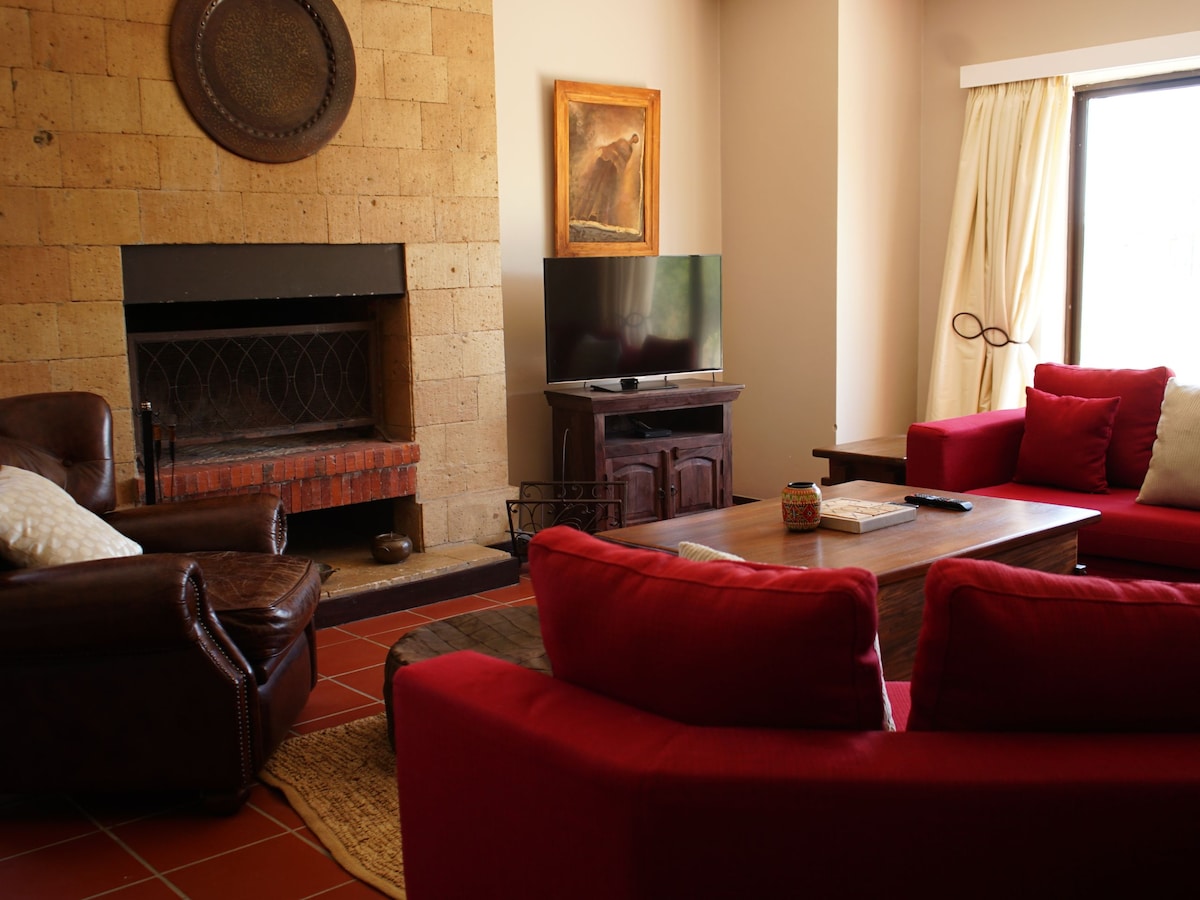 Selamat datang ke Suite Penthouse di Idan Barn, tempat persembunyian yang hangat dan menarik yang terletak di tingkat atas bangsal moden kami. Suite layan diri ini menawarkan bilik tidur persendirian, ruang rehat, ruang makan dan dapur lengkap — semuanya membuka ke balkoni besar dengan pemandangan gunung dan desa. Bersantai dengan menonton filem di TV, nikmati permainan papan kami, atau berehat di balkoni sambil anda melihat matahari terbit di atas Gunung Kenya. Tetamu mempunyai akses penuh kepada kafe di tapak kami, sesuai untuk makanan dan minuman yang baru disediakan.