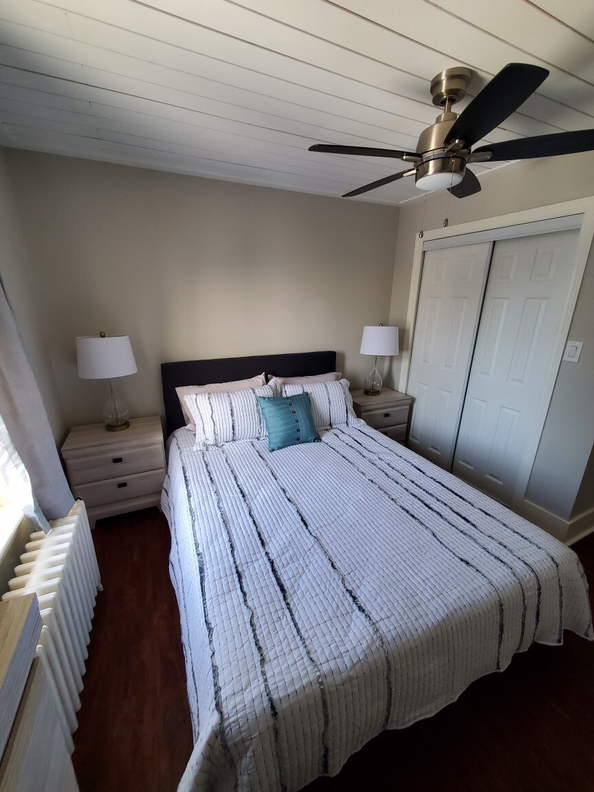 Selamat datang percutian cerah dan menawan ini! Di suite 1 bilik tidur dengan katil king ini, tetamu boleh berehat di bilik mandi spa dengan lantai yang dipanaskan dan watak yang menawan atau menikmati memasak di dapur yang terang benderang dengan tingkap pop-out cantik yang menghadap halaman peribadi. Disediakan dengan semua keperluan, kopi/teh & wi-fi percuma. Lokasi yang mudah ini sesuai untuk tetamu yang melawat untuk perniagaan dan keseronokan. Tetamu menggunakan pintu masuk berasingan untuk privasi dan keselesaan!