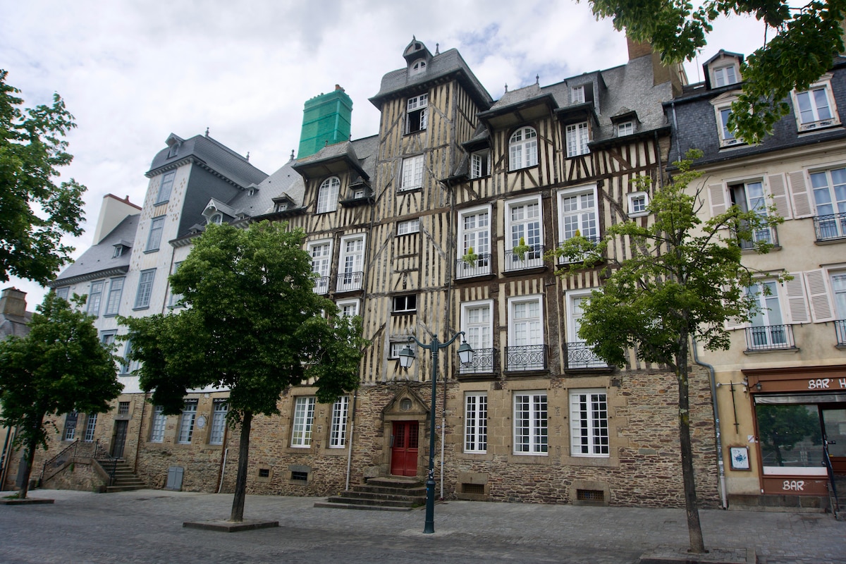 Bienvenue à l'hôtel de la Louvre ! Construit en 1659, l'immeuble dans lequel se trouve l'appartement est l'un des plus anciens de Rennes encore sur pied. L'escalier monumental et la façade sont classés aux monuments historiques. Il donne immédiatement sur la place des Lices et permet de profiter du marché le samedi matin, des bars et des restaurants qui l'environnent. Il se trouve à 5 minutes à pieds de la place et du métro Sainte Anne, et à 10 minutes du parlement.