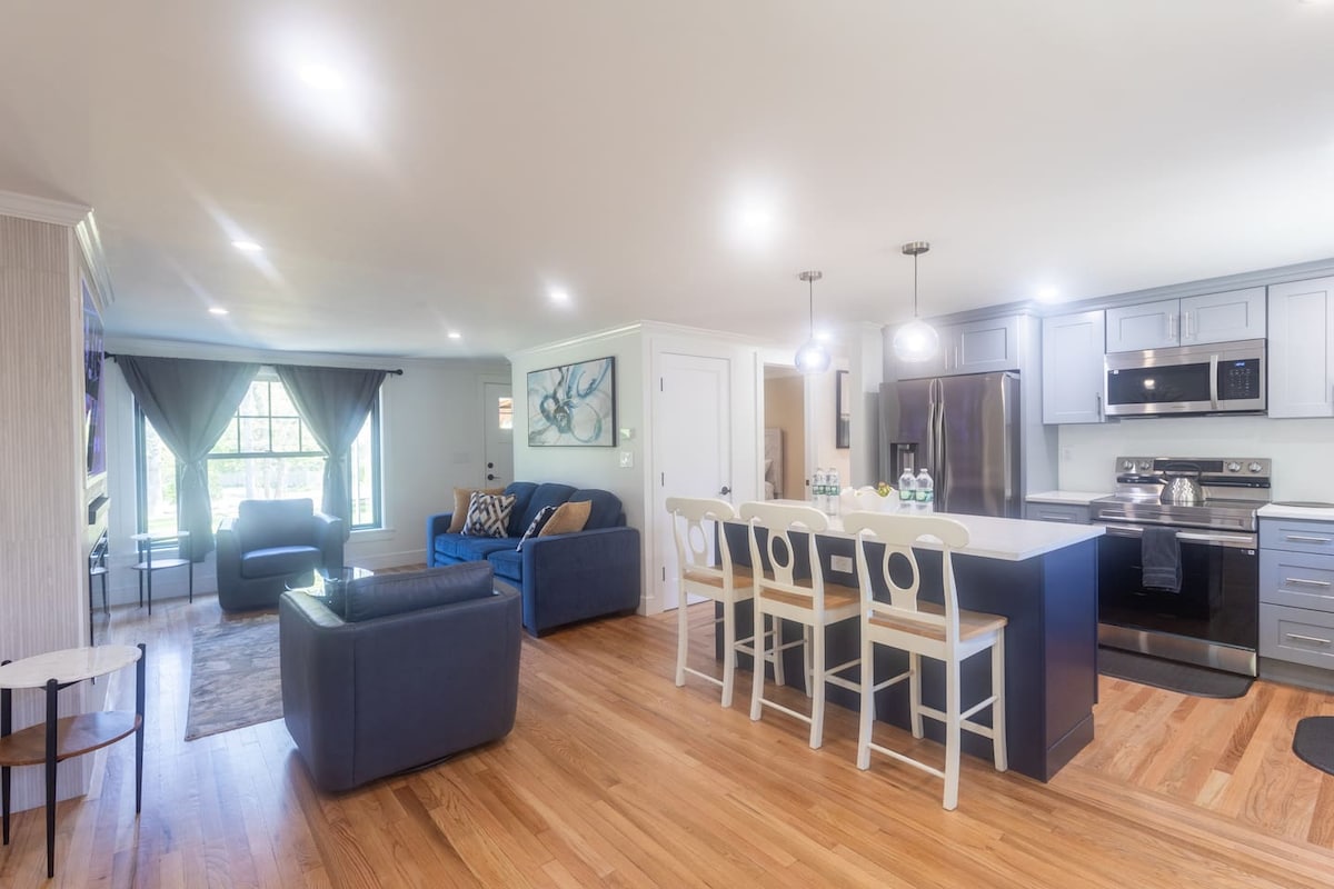 Langkah masuk ke percutian pulau anda yang tenang di 5 Pine Tree Lane, dengan 4 bilik tidur (4 katil) dan terletak di tengah-tengah Martha's Vineyard yang indah. Penginapan baharu ini menggabungkan keselesaan moden dengan pesona Vineyard yang sesuai untuk keluarga, kumpulan rakan, atau pasangan yang mencari percutian yang santai. Jarak berjalan kaki ke pantai kejiranan, akses feri sepanjang tahun (1 batu) dan membeli-belah. Penginapan ini direka bentuk dengan teliti dan menawarkan semua yang anda perlukan untuk pengalaman yang tenang dan tidak dapat dilupakan.