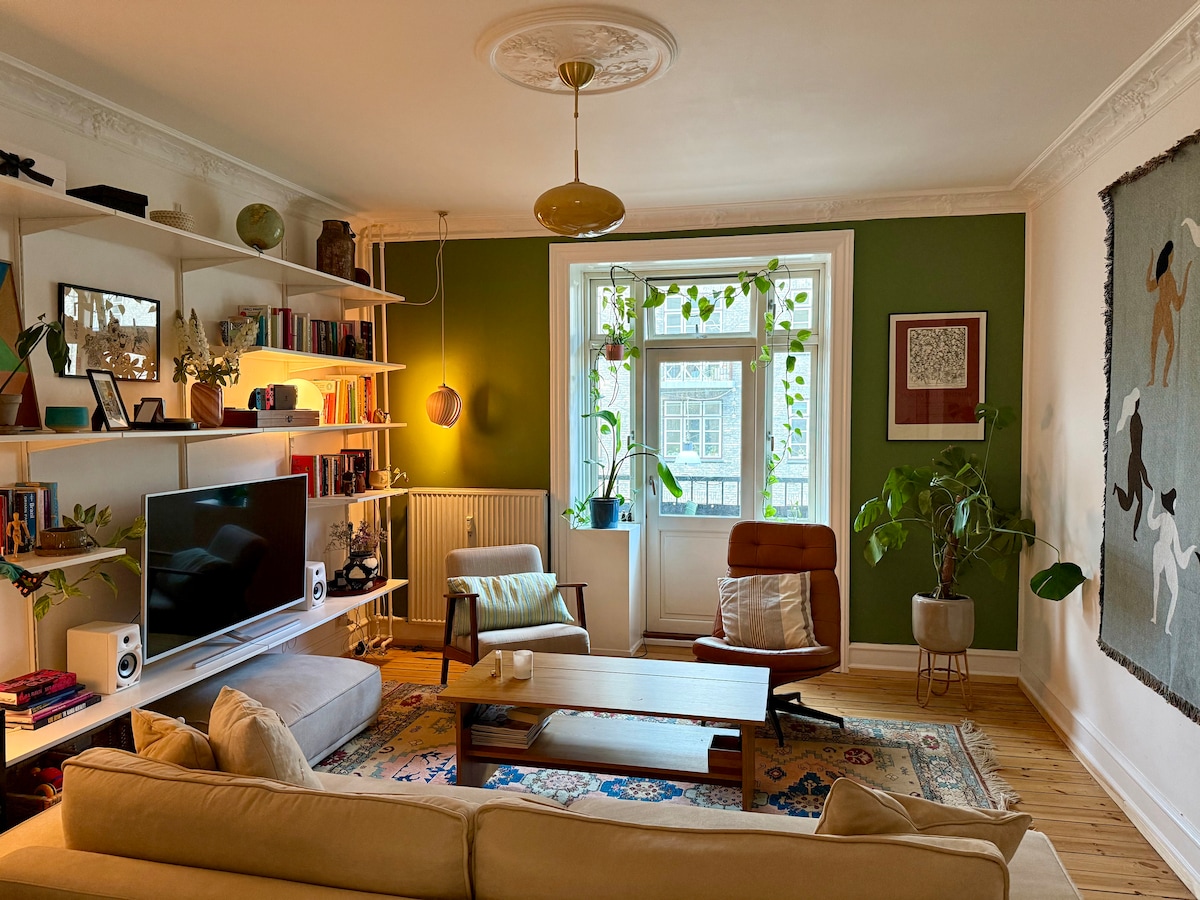 Selamat datang ke kediaman kami di tengah-tengah Copenhagen! Ini adalah ruang harian kesayangan kami, yang dipenuhi dengan kemesraan dan perwatakan. Anda akan berada berhampiran dengan mercu tanda Copenhagen yang paling indah, memudahkan anda meneroka budaya dan sejarah yang kaya di bandar ini. Anda juga mempunyai laluan bas terus dari Lapangan Terbang ke pintu depan. Beberapa langkah dari kawasan dermaga, anda boleh pergi berenang atau menikmati sauna terapung berhampiran, seperti penduduk tempatan sebenar. Flat kami mempunyai ruang tamu yang luas, bilik tidur yang selesa, dan ruang makan yang diterangi matahari dengan balkoni.