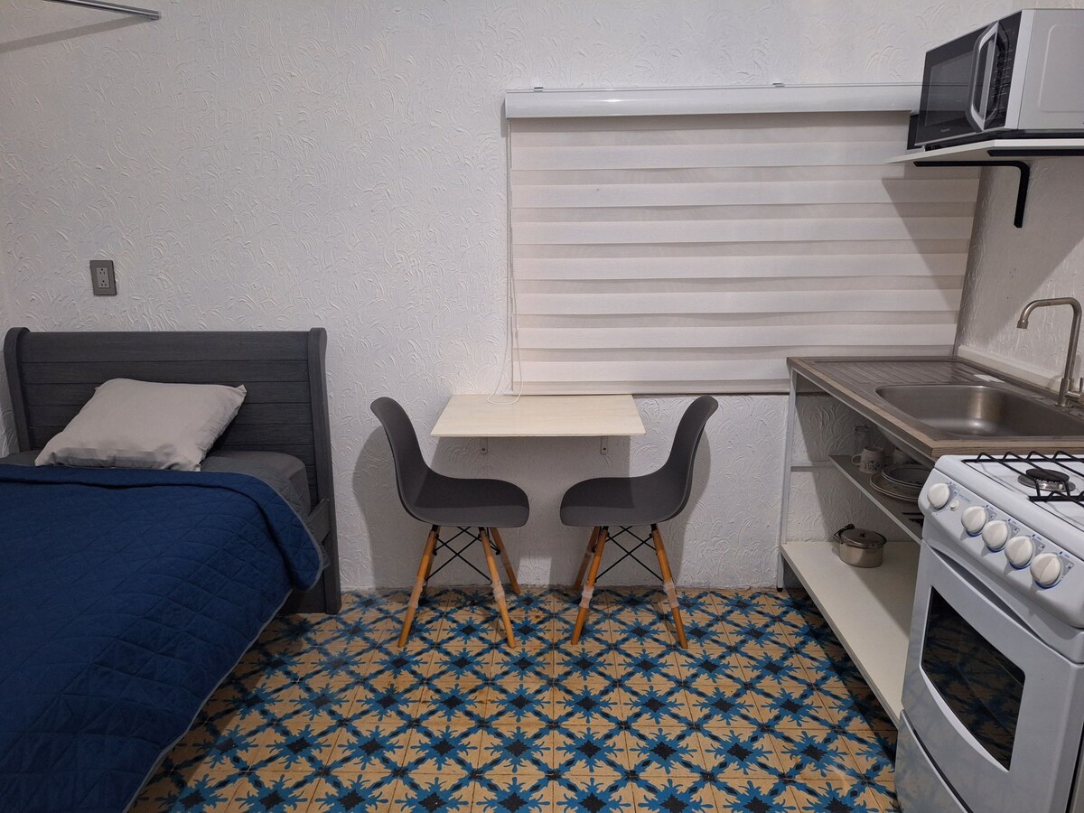 Loteng minimalis untuk dua orang di subbahagian yang tenang dan selamat di selatan Mexico City. Ruang ini mempunyai dapur lengkap, bilik tidur utama dengan katil double, pusat kerja dan bilik mandi lengkap. Inilah yang anda perlukan untuk penginapan yang selesa dan menyeronokkan di Mexico City. Selain itu, sangat dekat dengan Stadium Azteca, kawasan Hospital Pakar di Tlalpan, dan TEC Monterrey CDMX.