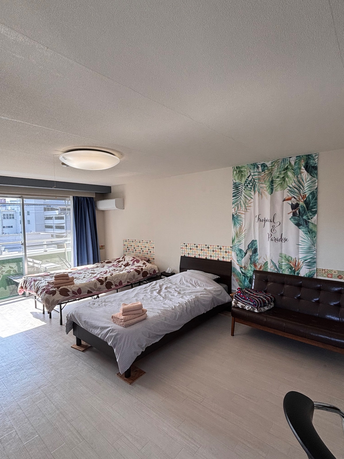 徳島駅から徒歩7分。徒歩3分圏内にローソン、ファミリーマート、郵便局があり、多くの飲食店、コインランドリー、繁華街までも徒歩5分と非常に便利な立地です。キッチンと調理器具がありますので簡単な料理を作る事も可能です。 洗濯機も完備しているので長期の滞在にも非常に便利です。デスク完備でリモートワークも可能! ★友達同士、カップル、家族、出張で来られた方の長期滞在も可能★ ★1名様のご利用も大歓迎★ 【駐車場】 駐車場はありません。建物の前にデイコインパーキングがあります。1日800円です。近くには1日あたり650円のパーキングもあります。 ※阿波踊り期間中やイベント時の変動あり。