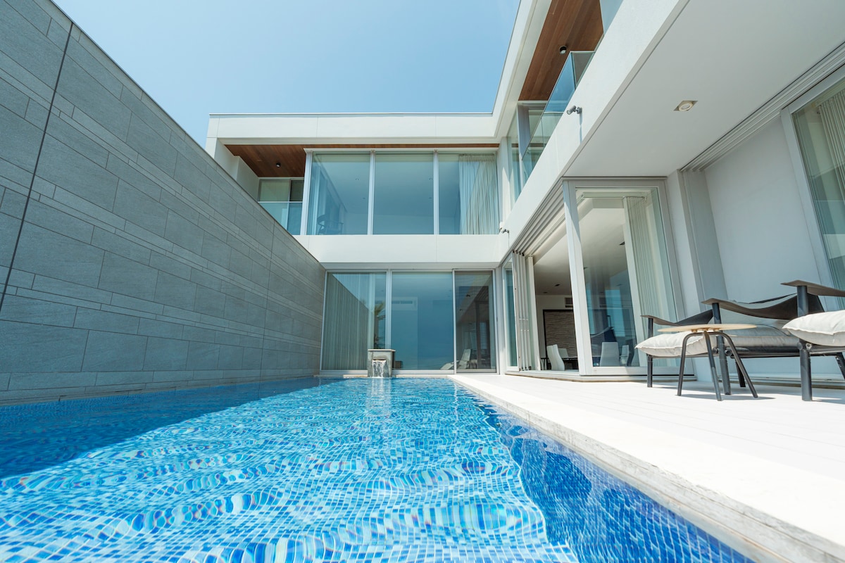 Dengan kolam renang & sauna & projektor 100 inci yang menyokong 4k Aqua Villa Futsupark 5 minit berjalan kaki dari laut