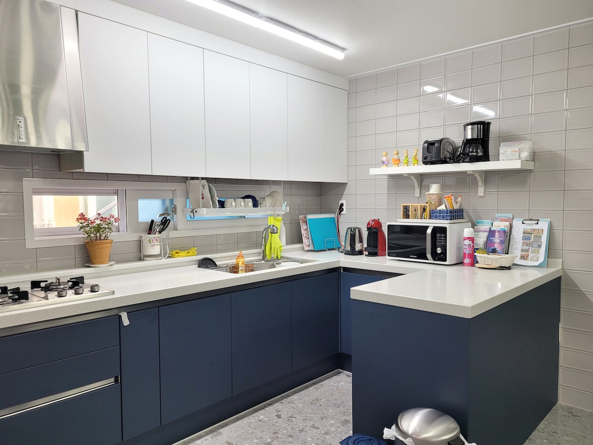 Helo, saya ingin menyediakan rumah yang baru diubahsuai dengan kenangan zaman kanak-kanak saya kepada mereka yang mengembara ke Tongyeong. Berdaftar sebagai rumah persendirian! Sesuai untuk mengubahsuai rumah yang terpisah untuk mengembara sebagai keluarga dan rakan-rakan! Bilik untuk 4 orang. Bilik 2. Ruang tamu, 2 bilik air, 1 bilik air, beranda, atas bumbung (sehingga 6 orang), diubahsuai tingkat 1 menjadi tempat letak kereta untuk 2 ruang letak kereta. Lengkap dengan wifi, sistem aircond 2 minit berjalan kaki dari Terowong Laut Tongyeong dan di seberang jalan dari Yoon Sicia Music Park. Di seberang jalan, 1 minit dengan kereta, 5 minit dengan kereta, 10 minit berjalan kaki: Pasar Seoho, Pasar Jungang, Dongpirang, Terminal Kapal Pesiar 10 min dengan kereta: Kereta kabel, luge, Taman Yi Sunshin, Taman Nammansan, Hutan Sejatra 15 min dengan kereta: Muzium Sains Perikanan, Taman Dali Kemudahan: Terdapat mart diskaun di seberang jalan, terdapat restoran sashimi di kejiranan ini, jadi ada baiknya sashimi selepas meletak kereta pada waktu petang. Ia berdasarkan 4 orang, dan sehingga 6 orang boleh dikenakan yuran tambahan sebanyak 15,000 won bagi setiap orang. Saya harap anda dapat membuat banyak kenangan indah di Tongyeong yang indah. Selamat datang! "