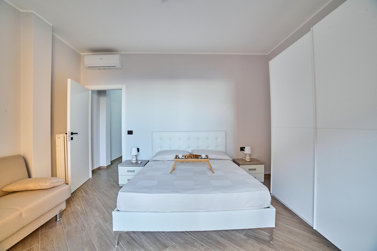 CIN Code: IT009042C2EFIHXID9. Third-floor apartment with elevator (there are 12 steps to the elevator). Very bright and airy, with views of the greenery. Two large balconies, one with an awning, table, and chairs. Private parking is available 200 meters away, with a 3 kW slow-charging socket for electric vehicles; please inquire at check-in. The apartment is approximately 700 meters from the sea.