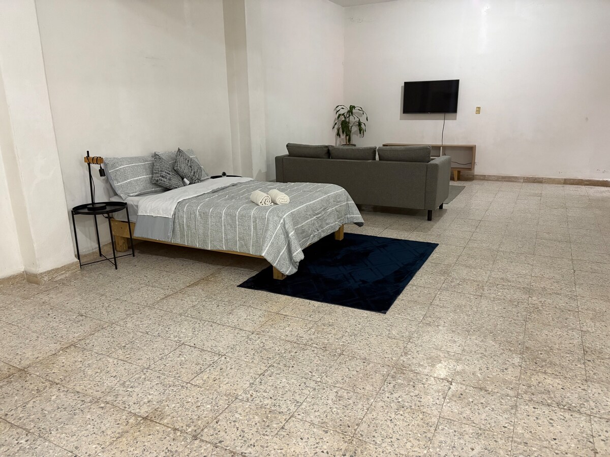 Loteng yang selesa di komuniti berpagar persendirian, sesuai untuk berehat selepas hari yang panjang. Di tingkat atas anda akan menemui katil double, almari besar, tingkap pemandangan taman dan teres persendirian. Tingkat bawah mempunyai dapur lengkap, bilik mandi lengkap, mesin basuh/pengering, katil sofa dan kerusi rehat. Sesuai untuk penginapan jangka pendek atau panjang. Jika anda ingin mengalami hospitaliti Mexico yang sebenar, ini tempat yang sesuai.
