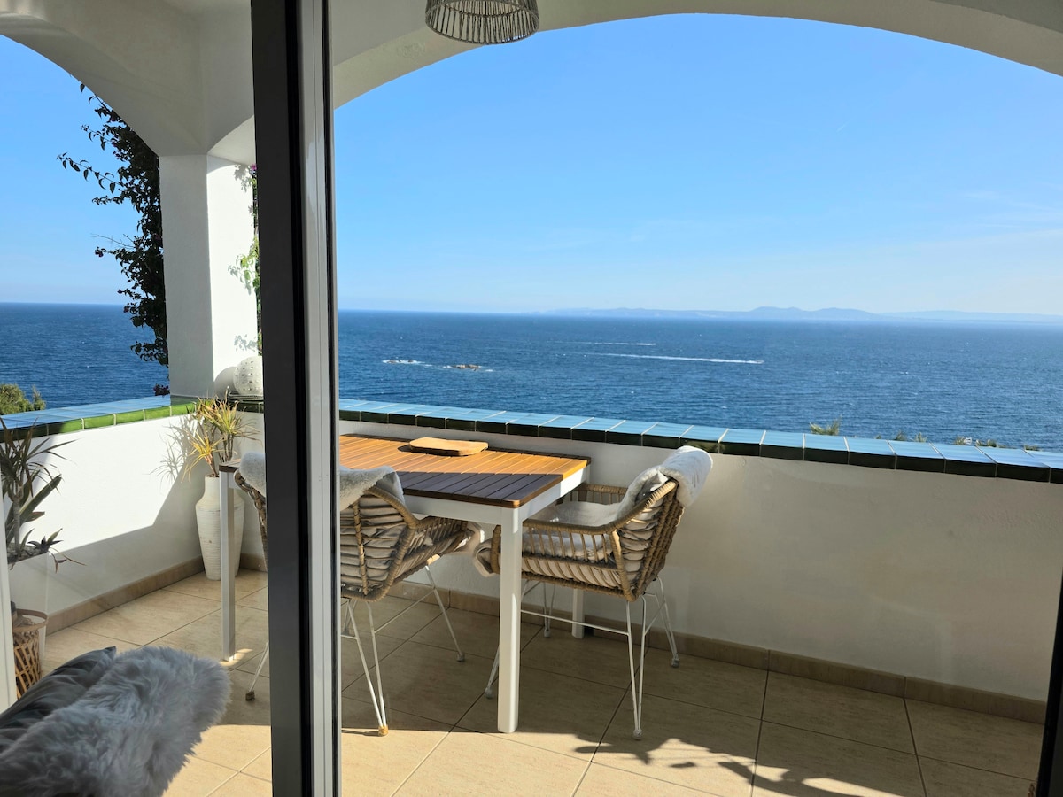 Pengalaman tepi air eksklusif dengan pemandangan yang luar biasa di flat yang menawan yang baru diubahsuai pada tahun 2023 dengan semua keselesaan moden (dapur lengkap, penyaman udara, wifi, Netflix, peralatan tempat tidur berkualiti, dll.). Pemandangannya yang unik dan balkoni besar yang terletak di atas laut akan memberikan anda kenangan yang tidak dapat dilupakan tentang bunyi ombak. Di lokasi: kolam renang besar, garaj persendirian. Dalam jarak berjalan kaki: pasar raya, restoran bar pantai, denai hiking.