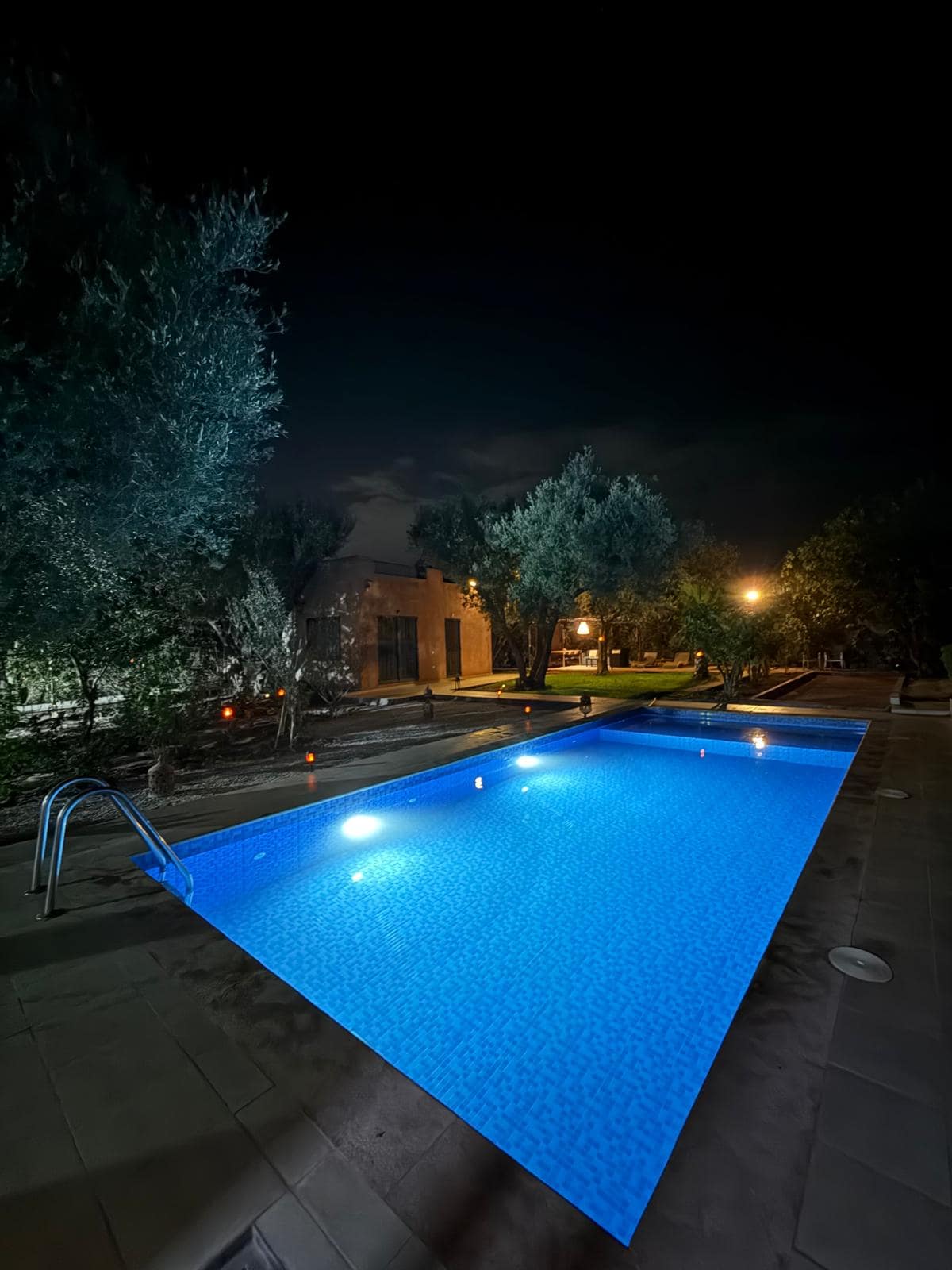 Vila mewah di tengah-tengah taman landskap seluas 3,000 m², dihiasi dengan pokok zaitun dan pokok palma berusia berabad-abad. 4 suite elegan masing-masing dengan bilik mandi peribadi, bilik persalinan, TV, pendingin hawa dan pendiangan terbuka. Ruang tamu cerah yang besar membuka ke kolam renang dan taman, dapur lengkap, gimnasium dan teres yang menawarkan pemandangan Kolam Atlas yang menakjubkan, kawasan barbeku dan ruang makan luar untuk momen yang tidak dapat dilupakan. Kebersihan berkilauan Cadar percuma.