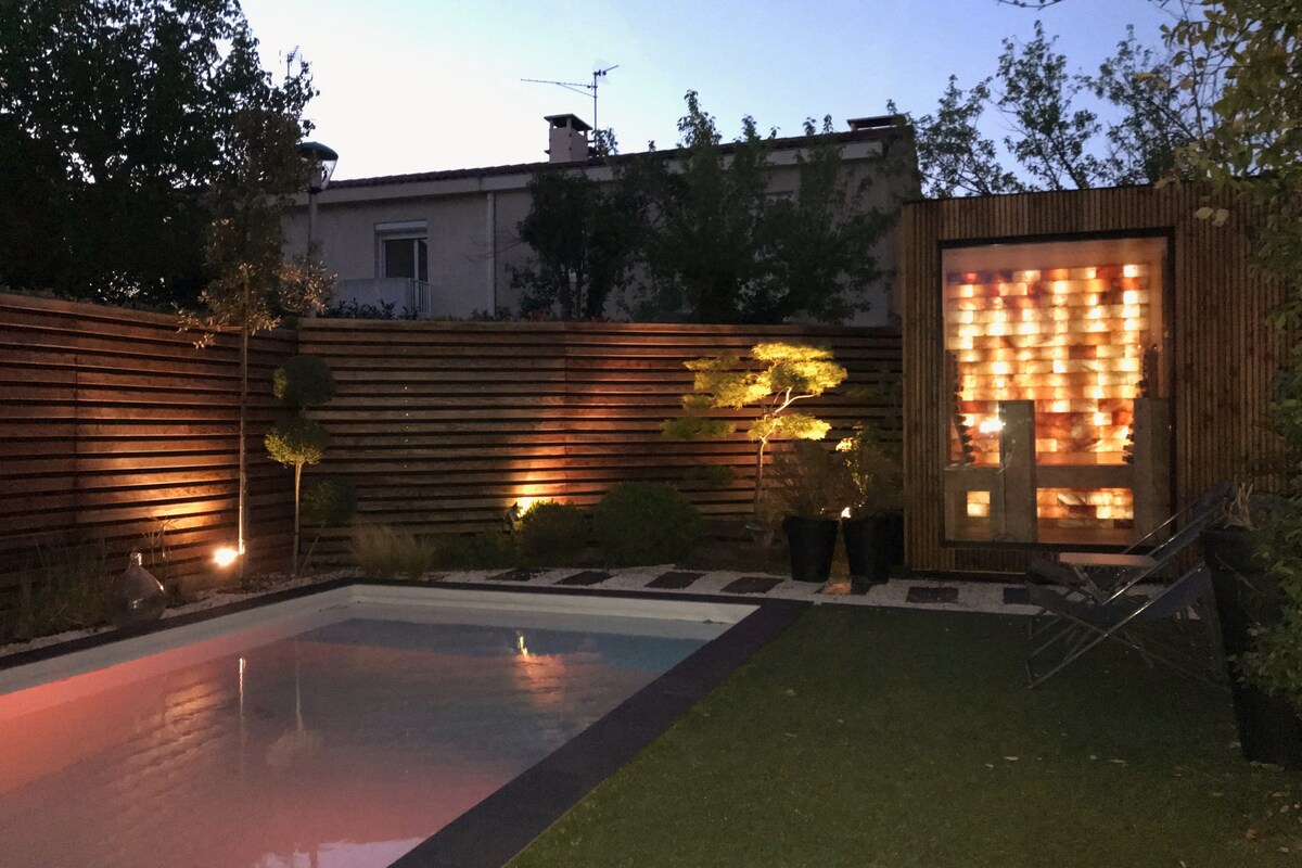 Lawatan ZEN ke TOULOUSE Terletak di daerah Purpan Toulouse, berhampiran dengan Blagnac, rumah dalaman kontemporari ini mempunyai kolam renang peribadi yang menghadap ke taman Zen gaya Jepun, teres besar dengan sofa luaran, Sauna kolam renang IR Luaran, dan dinding bata garam Himalaya untuk berehat dan kesejahteraan. Penginapan ideal - keselesaan premium premium, untuk penginapan profesional dan/atau percutian di Toulouse, Blagnac dan sekitarnya. Rumah dari 2 hingga 10 orang.