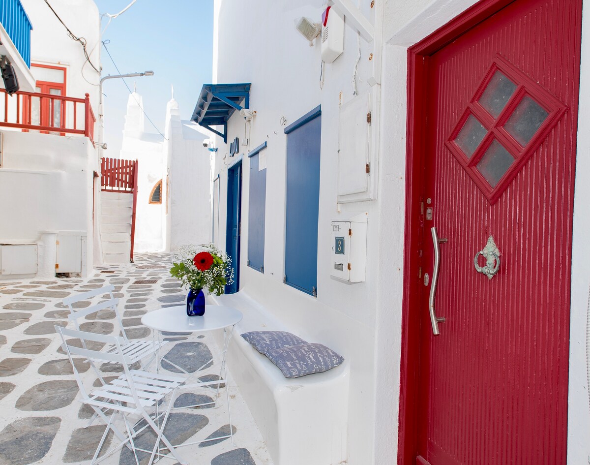 Rumah gaya Mykonian yang diubahsuai sepenuhnya di tengah-tengah Mykonos dan hanya beberapa langkah dari semua restoran, bar dan butik. Sesuai untuk rakan atau keluarga, rumah dua tingkat, dengan dua bilik tidur dan dua bilik mandi, dapur lengkap, ruang tamu dan dua balkoni luar dengan pemandangan. Rumah ini boleh menampung hingga 6 orang dewasa. Pengubahsuaian ini tertumpu kepada reka bentuk dan kelestarian menjadikannya keselesaan untuk dinikmati oleh semua.
