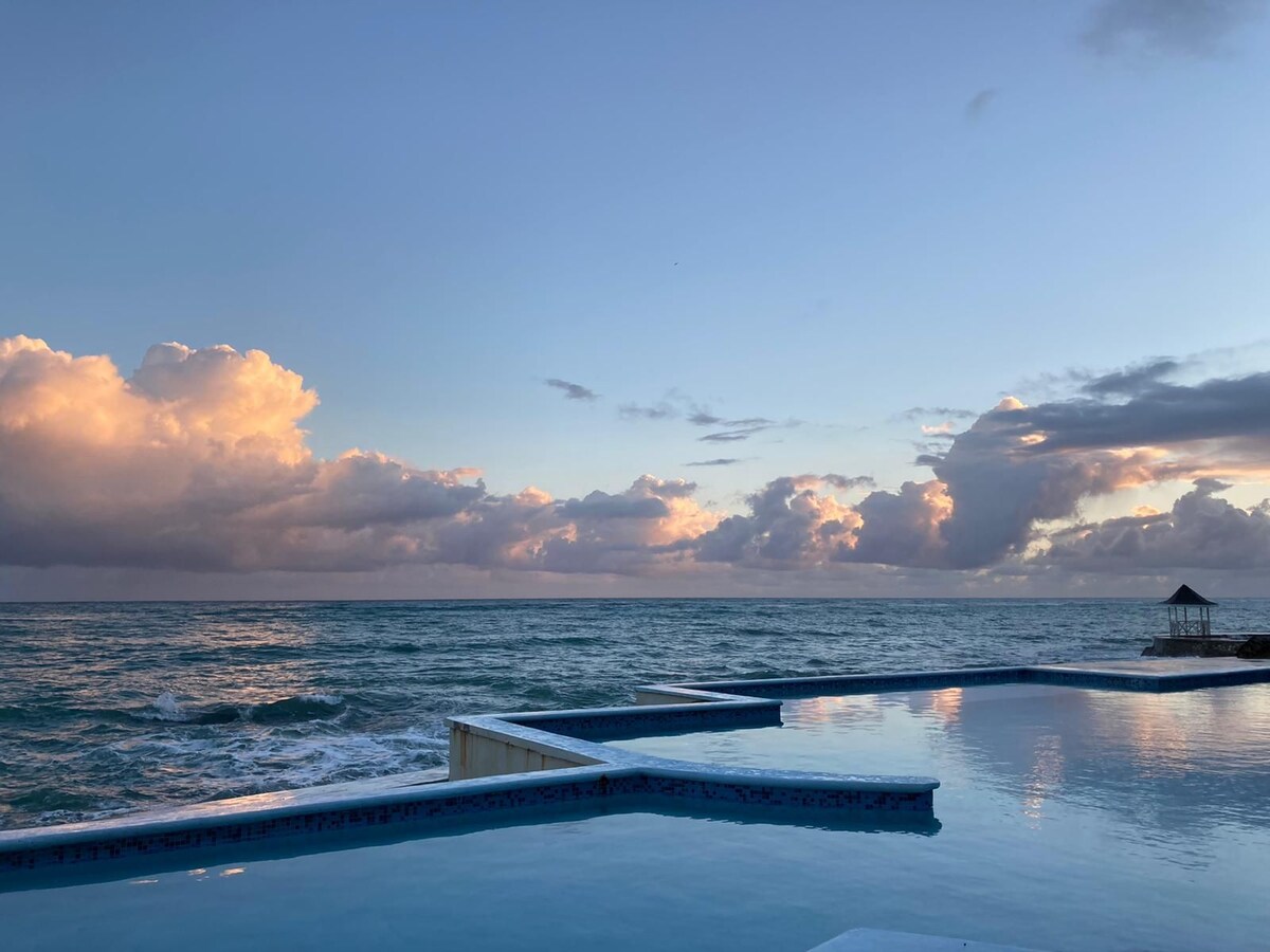 Berehat dan bersantai di Kondominium 2 bilik tidur yang tenang dan bergaya di tepi laut ini dengan kolam renang infiniti. 5 minit ke timur Ocho Rios, dalam jarak berjalan kaki ke restoran tepi laut, pusat jerk tempatan, bar dan kedai runcit. Kami boleh menampung hingga empat orang tetamu. Memandangkan kami menerima ramai pasangan yang mengembara, kami menawarkan kadar asas berdiskaun untuk dua tetamu dan setiap tetamu tambahan dikenakan yuran tambahan sehingga maksimum empat orang. Untuk dua tetamu, kami biasanya akan menutup bilik tidur kedua melainkan diminta sebaliknya.
