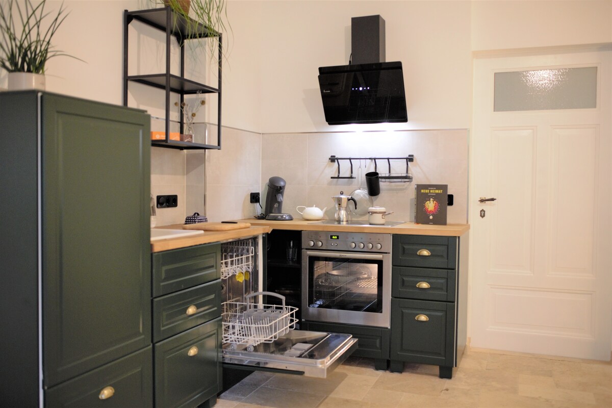 Alami bakat Mediterranean di pusat Jerman. Penginapan ini dicirikan oleh fabrik bangunan yang mampan dan suasananya yang unik. Rasuk ek dan papan lantai oak dari Thuringia, plaster tanah liat dalam warna yang luar biasa, meja oak besar yang diperbuat daripada bagasi, sofa canggih untuk bersantai, bilik tidur untuk bermimpi, dapur pelet Itali dan dapur yang selesa sedia untuk anda. Anda akan menyukai kawasan berhampiran dengan hutan.