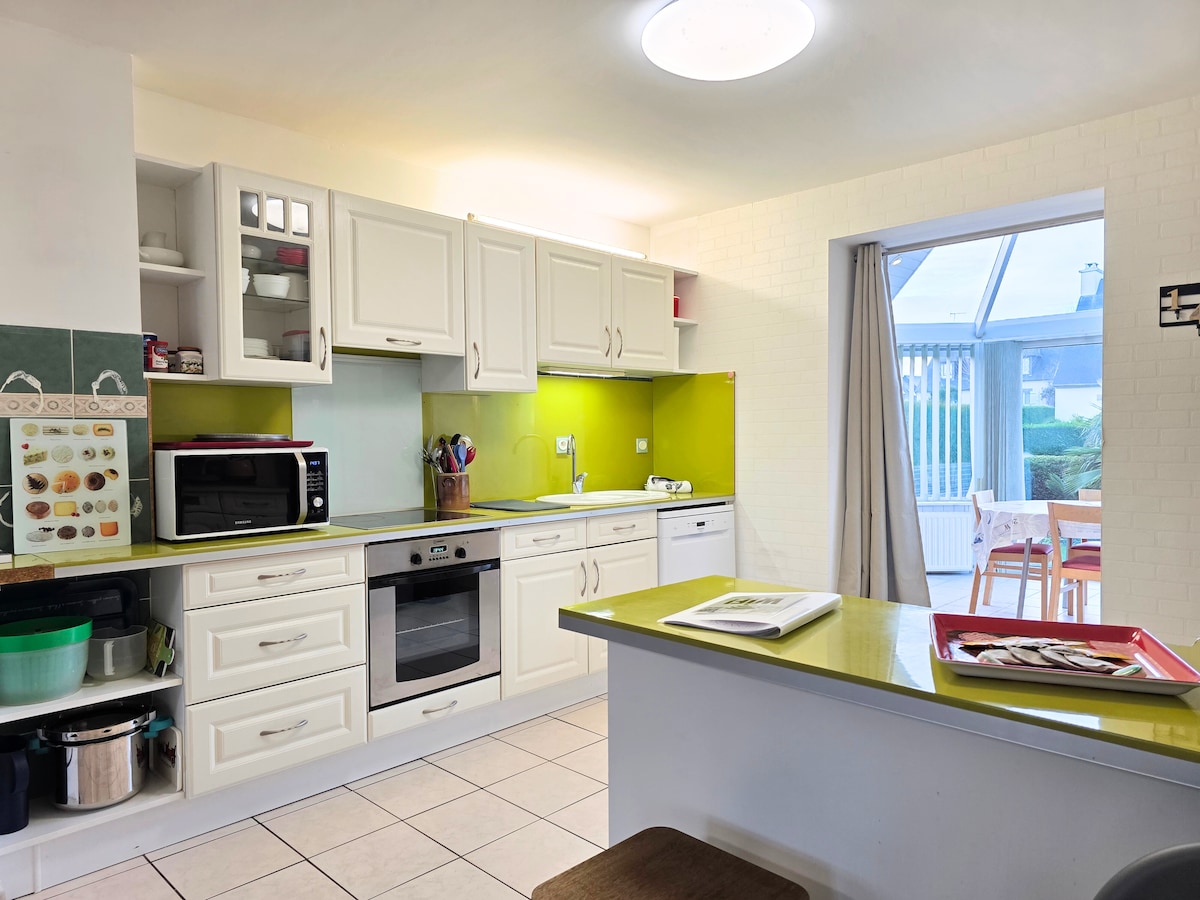 Rumah yang cerah dan mesra dengan taman persendirian, terletak di kejiranan yang sunyi hanya 10 minit dari pusat bersejarah Saint-Brieuc dan 15 minit dari pantai. Nikmati teres dengan BBQ, dapur lengkap, dan 3 bilik tidur yang selesa-sempurna untuk keluarga atau rakan. Anjing kecil yang berkelakuan baik dialu-alukan! Tempat letak kereta persendirian, internet gentian, peralatan bayi... Semua yang anda perlukan untuk penginapan yang santai di Brittany yang indah!