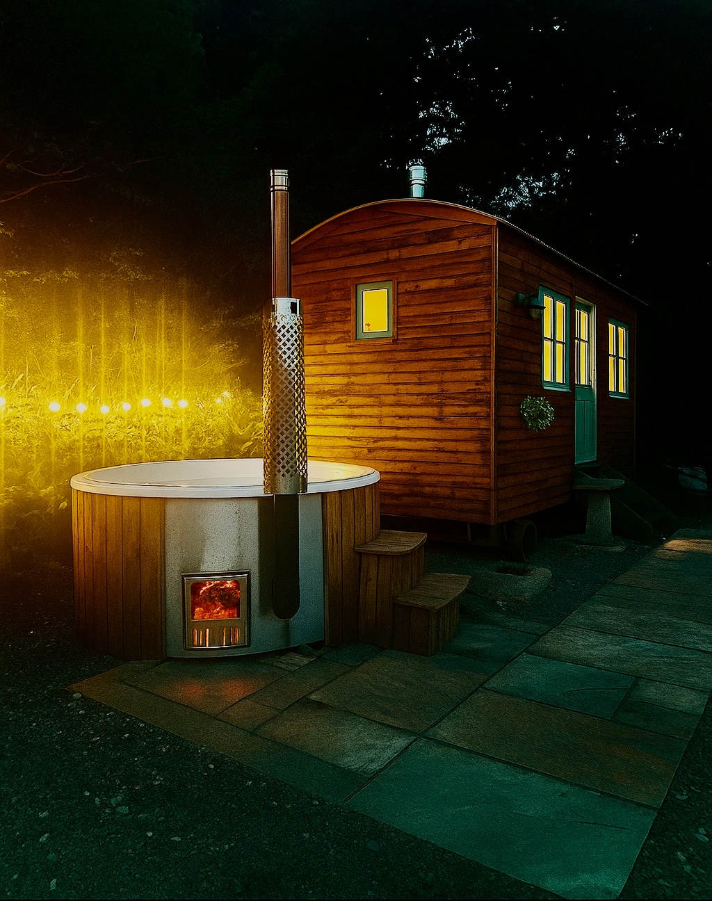 Indulge in a luxury spa experience at a tranquil cottage. Follow a garden path from your decked balcony to a private wood-fired hot tub, sauna, hammock, outdoor shower and summerhouse. It's a great spot for stargazing by night and bird-watching by day. Cook in a modern well-equipped kitchen or have a night off, dinner prepared for you by us and brought over to the cottage. Please note that all logs for the hot tub and log burner are inclusive ! We are pet friendly and welcome 1 large breed or 2 smaller breeds of dog. The cottage is situated in the grounds of our own home. While it is entirely private we are on hand if you need anything and Mark can also provide private catering as a highly regarded chef sourcing the best local produce in Cornwall ! The cottage terrace opens out from the bedroom with direct access to the garden and a path which leads to an outdoor spa with wood fired hot tub, sauna, hammock, fire pit and summerhouse. We are located in the adjacent house should you need us for anything at all but offer our guests total privacy otherwise. The choice is yours ! The cottage is in a pretty rural hamlet surrounded by countryside near the market town of Launceston in the county of Cornwall. A car is needed. The cottage sleeps 2 adults in a King sized bed and up to 2 small children (under 12) on the sofa bed.