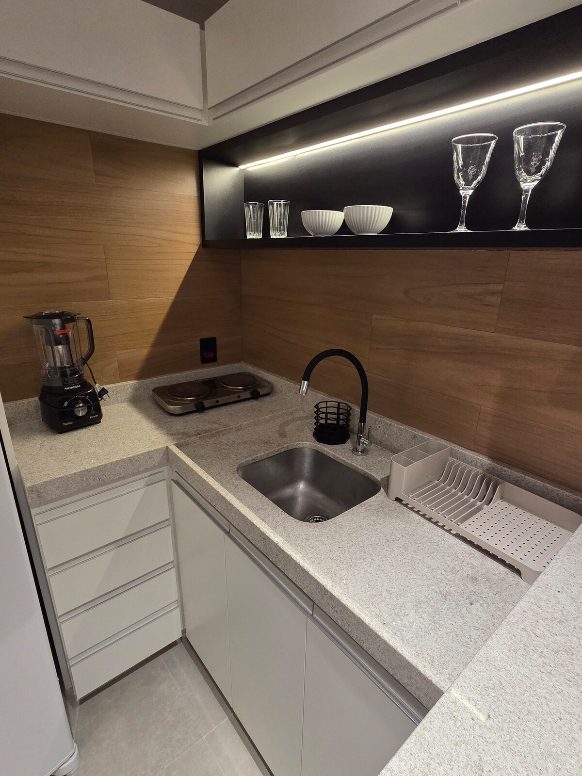 Ruang seluas 13,19 m² dengan segala yang diperlukan untuk penginapan kerja atau percutian. Di dalam bilik tidur terdapat ketuhar gelombang mikro dan bar mini untuk kemudahan anda. Dua blok dari Segitiga Bermuda - kompleks bar terbaik di Vitória, apartmen ini mempunyai lokasi Praia do Canto yang paling istimewa. Kejiranan ini menawarkan bar, kedai roti, pasar raya, farmasi dan restoran. Akses mudah ke Shopping Vitória (5 minit dari kereta), jambatan ke-3 - yang menghubungkan Vitória ke Vila Velha - dan Pantai Camburi.