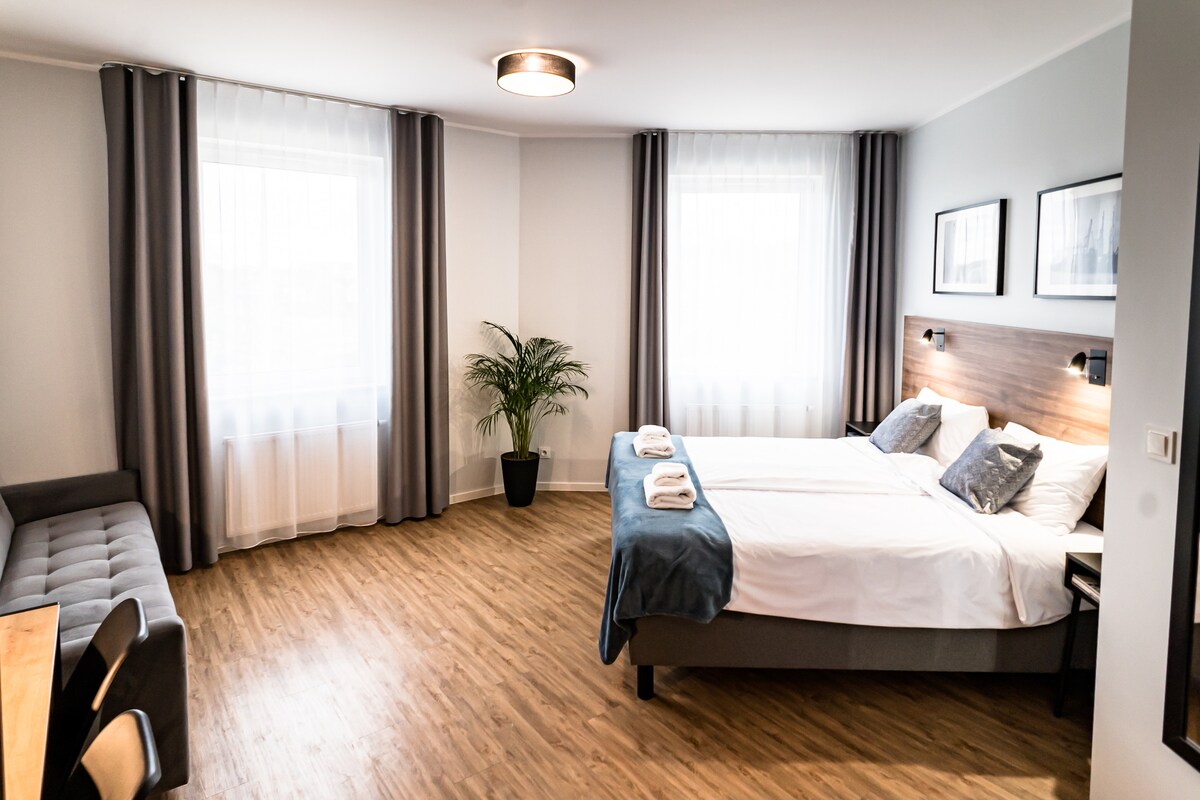 Terletak dengan mudah di pinggir bandar lama 200m dari stesen kereta api utama dan hab pengangkutan awam. Bangunan ini terletak jauh dari jalan utama dan trek, yang menjamin keamanan dan ketenangan. Pangsapuri ini terletak di tingkat 2. Akses disediakan oleh kunci kepada kod, memberikan anda kebebasan untuk mendaftar masuk dan mendaftar keluar. Apartment mempunyai dua dapur kecil yang lengkap, dua ruang tamu dengan sofa, dua bilik tidur dengan katil double dan dua bilik mandi dengan pancuran mandi.