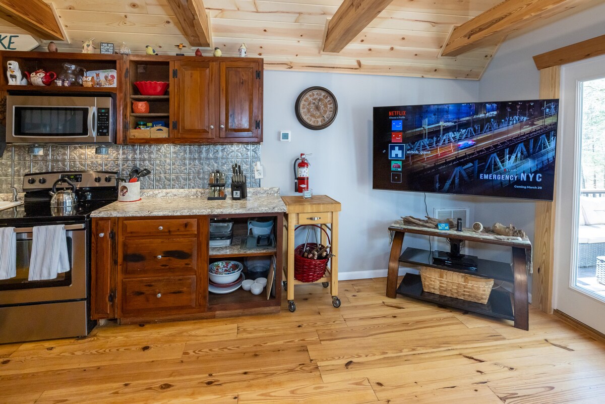 Selangkah lagi dari kesibukan yang huru-hara dan berehat di Hidden Haven Cabin kami yang mempesonakan, tempat percutian peribadi anda yang terletak dalam pelukan alam semula jadi. Terletak sempurna hanya 15 minit memandu dari kemudahan bandar yang menawan, permata tersembunyi ini menggabungkan pengasingan dengan kemudahan, membolehkan anda menikmati pengalaman makan yang lazat sambil masih menikmati malam yang tenang yang dibalut dengan simfoni alam semula jadi yang menenangkan.