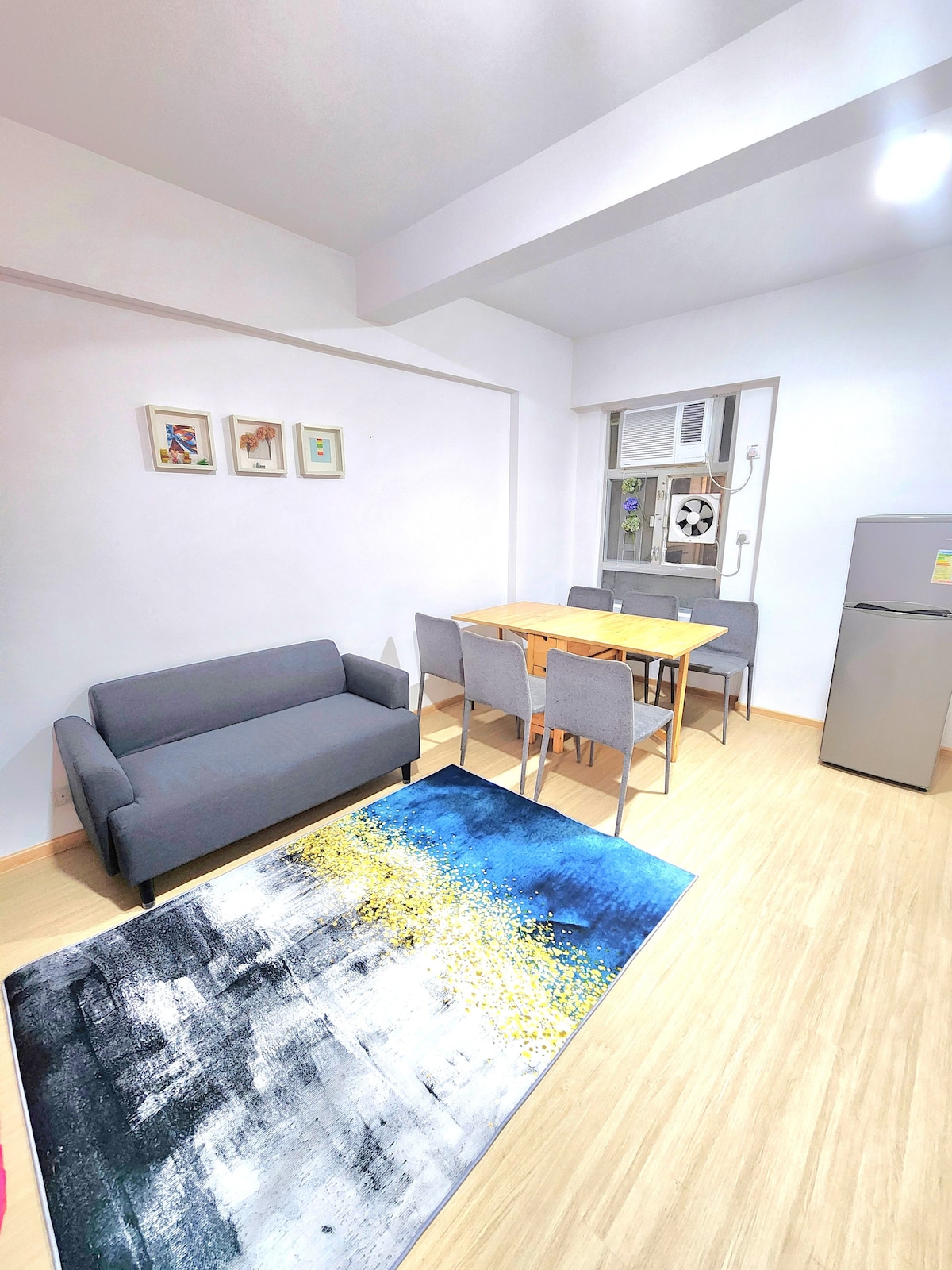 Apartmen kami mempunyai 3 bilik tidur ,satu ruang tamu dan 1 bilik air, setiap bilik mempunyai katil kelamin yang boleh muat untuk 2 orang setiap satu. Ruang tamu mempunyai 1 katil sofa (saiz katil double) yang boleh menampung sehingga 8 orang secara keseluruhan. Apartmen kami terletak di 6/F dengan lif, dihiasi dengan perabot penuh. Bangunan kami kurang daripada 5 minit berjalan kaki dari MTR dan perhentian bas lapangan terbang A21