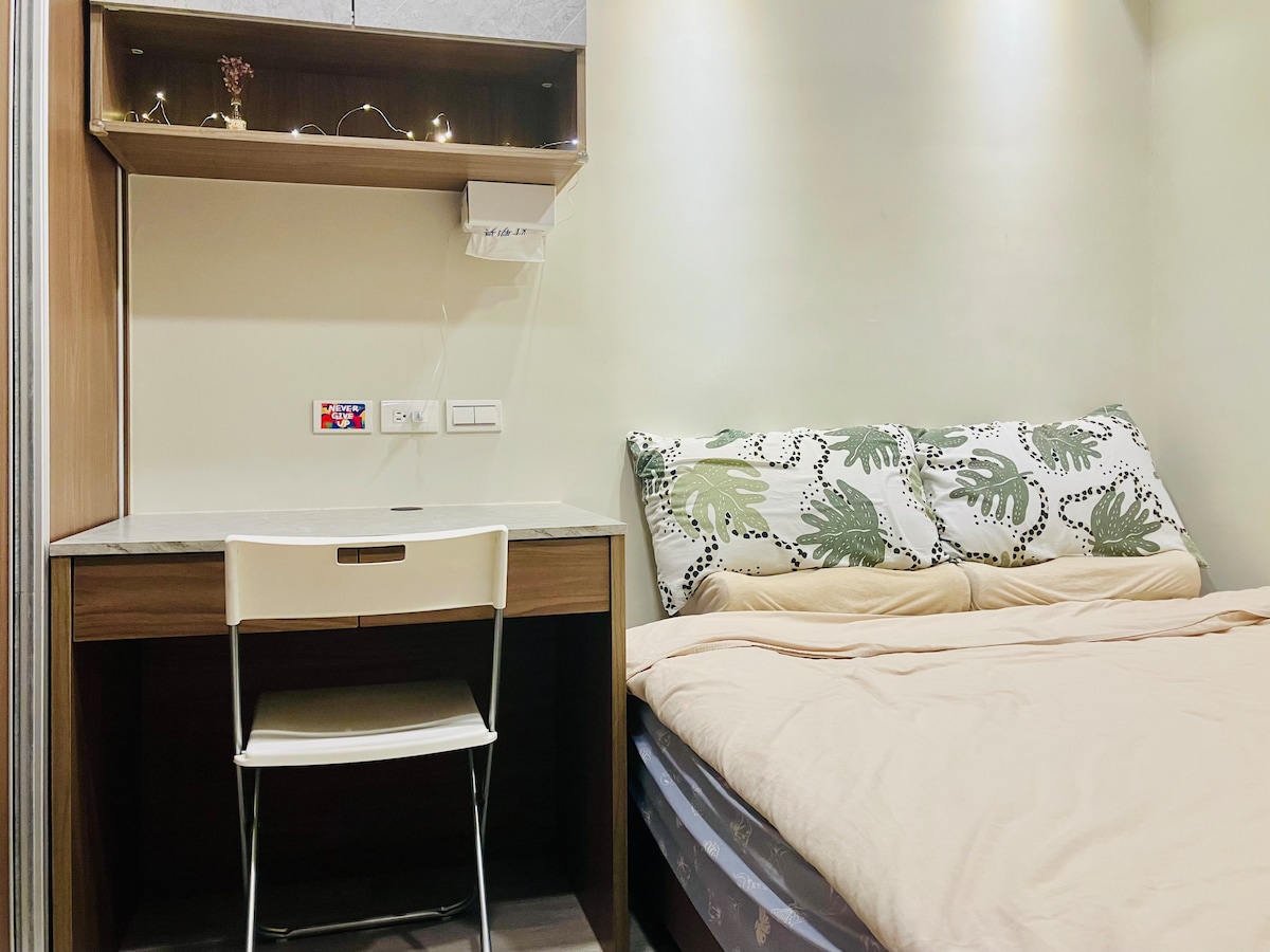 Saya tinggal di apartmen yang selesa,dan saya sudah biasa menerima orang asing yang cenderung untuk berpuas hati dengan suasana yang mesra dan seperti rumah sendiri. Suite ini berhawa dingin dan menyediakan untuk 2 orang. Dapur adalah baik untuk menyediakan makanan dan mempunyai mesin untuk mencuci pakaian. Kami berada berhampiran dengan membeli-belah, dengan kedai-kedai dan restoran, dan semua yang diperlukan. Stesen bas sangat dekat, dan anda boleh berjalan kaki ke stesen metro pada Mac 2014. Bilik: Boleh memuatkan 1-2 orang dengan katil sebenar Cadar dan tuala disediakan Dapur penuh dengan peti sejuk, anda boleh menyediakan makanan Bilik mandi dengan pancuran mandi, gel mandi, syampu disertakan Mesin basuh untuk pakaian anda Lokasi Bilik berhawa dingin: New Taipei City Tranquil dan kawasan yang tenang Kedai serbaneka berhampiran untuk barangan saat akhir dan snek Kawasan membeli-belah berhampiran dengan butik tempatan, kedai, restoran tempatan dan makanan segera tersedia Stesen bas berdekatan untuk membawa anda ke Taipei City Tarikan tempatan lain: Muzium Nougat Taiwan Taman Keluarga Lin Leoofoo Village FE21 Mall Sanxia Old Street Kawasan Rekreasi Gunung Tianshang Yingge Old Street Kuil Chengtian Chan Tucheng Riverside Park Paulownia Park