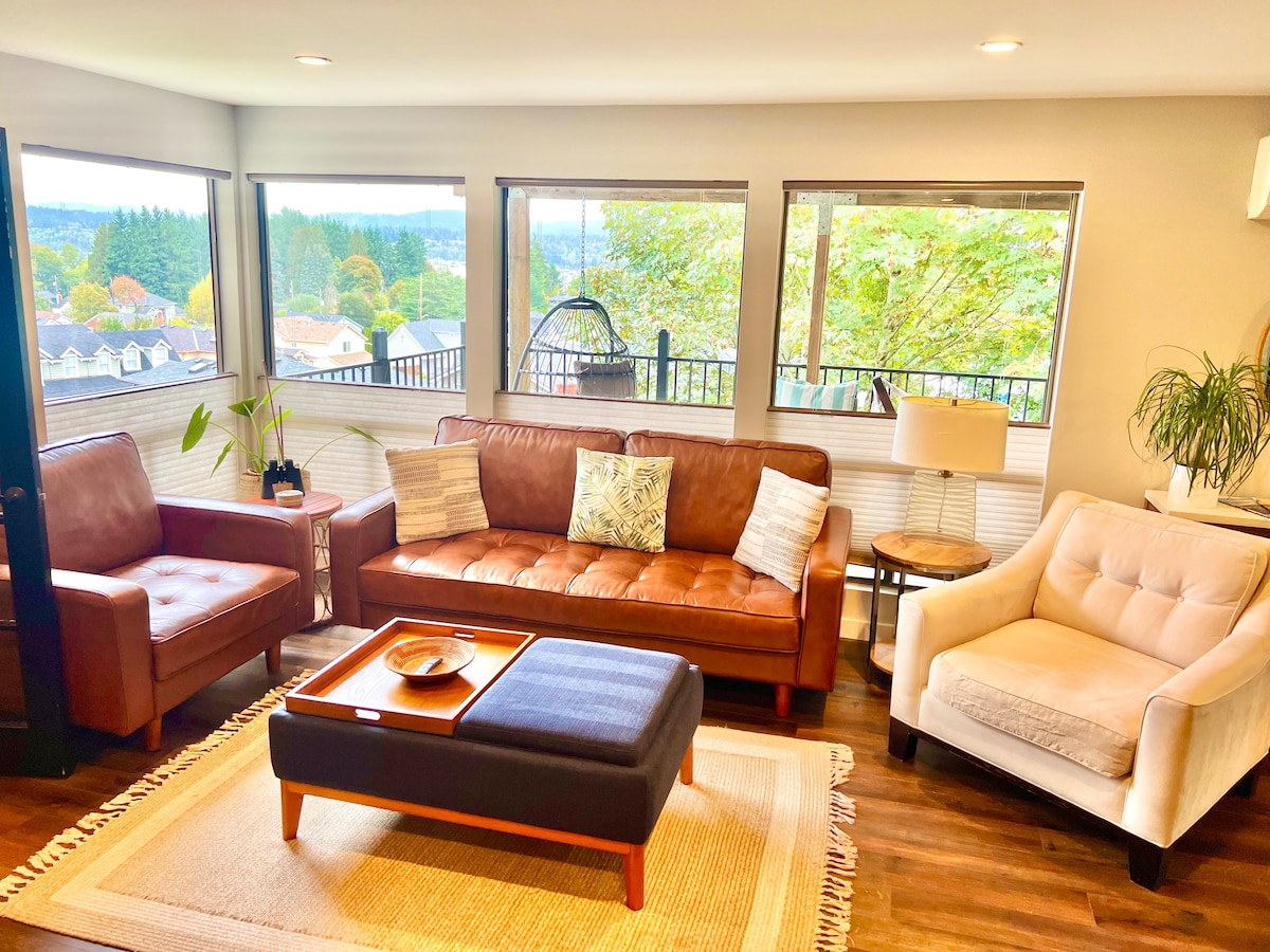 Keluar dari bandar & segarkan diri di tempat persembunyian tetamu kami yang luas dan baru diubahsuai. Nikmati secawan kopi/teh/wain di patio yang teduh sambil menikmati pemandangan Tasik Washington & Pergunungan Cascade yang menenangkan. Selesakan diri di atas sofa dengan selimut & buku daripada almari buku kami yang disusun dengan teliti. Atau nikmati persembahan kegemaran anda di TV pintar 65 inci. Jika anda terinspirasi untuk menyediakan hidangan, dapur yang disediakan menawarkan pilihan buku masakan & keperluan memasak, termasuk: ketuhar gas, periuk & kuali, bakeware, minyak, & rempah.
