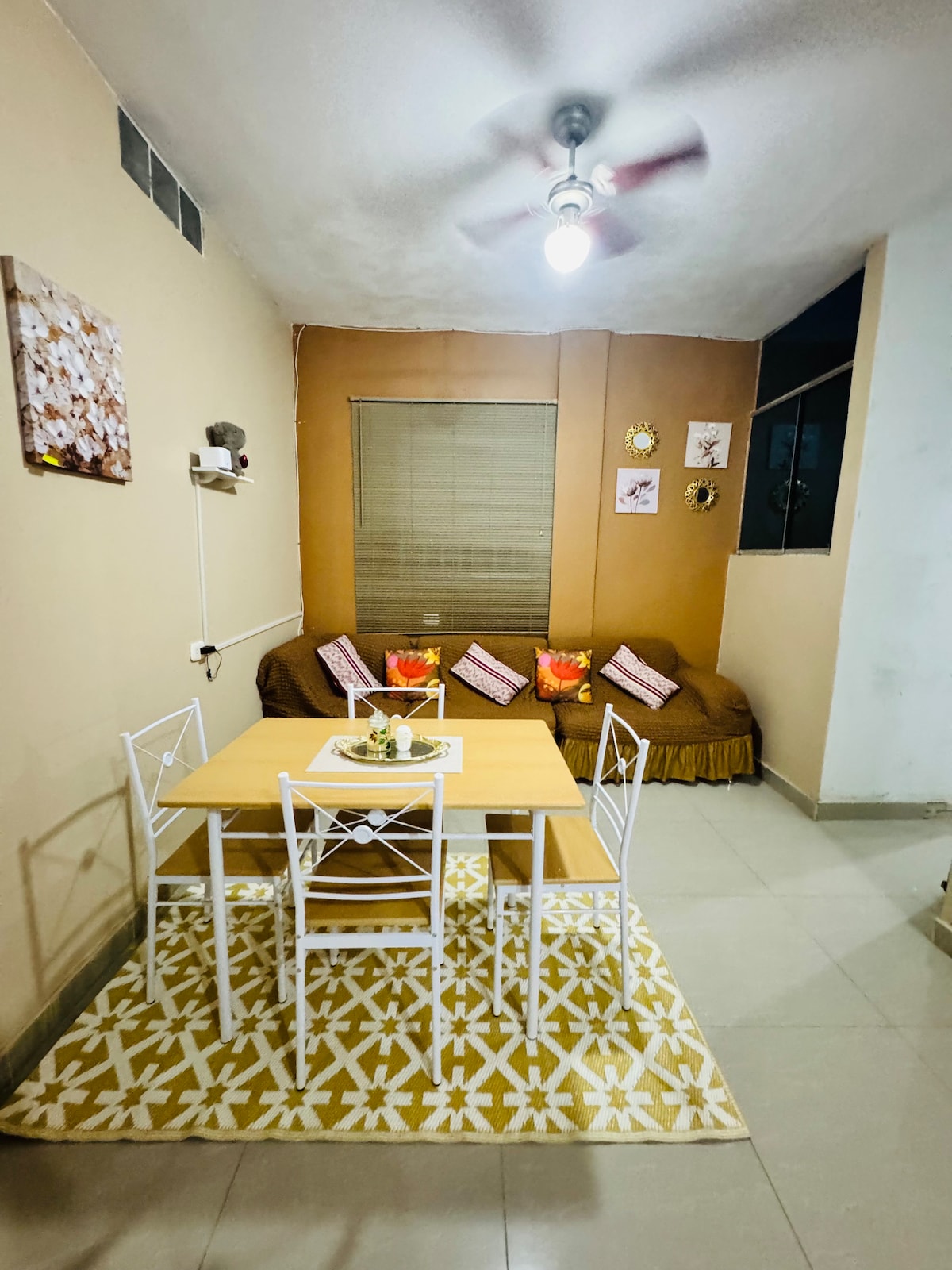 Studio Apartment Furnished studio apartment, ideal for 2 people. Includes bedroom with double bed, air conditioning, equipped kitchen, washing machine, and private bathroom. All utilities included: water, electricity, WiFi, and weekly cleaning. Located in a quiet, safe area with easy access to transport and markets. Monthly, weekly all-inclusive rent. Minimum stay: 1 day . Contact us for more info or to schedule a viewing!