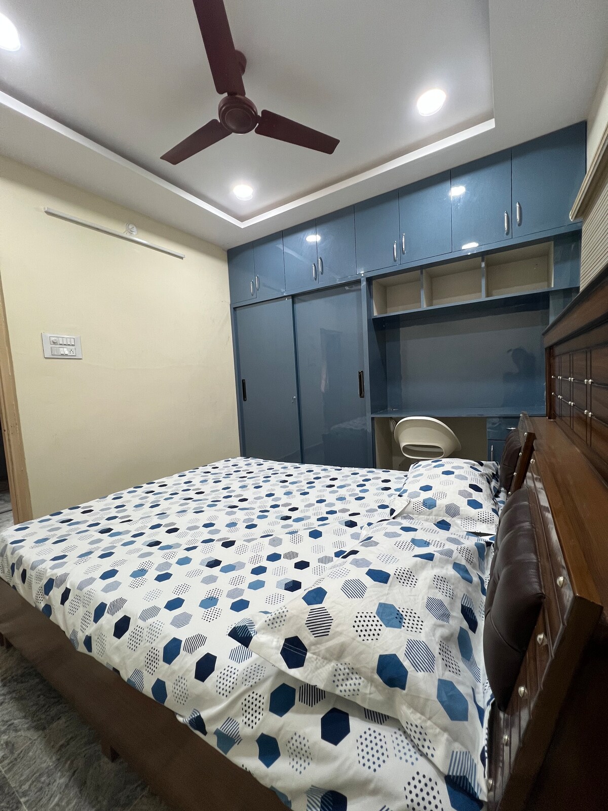 ● 1BHK tingkat bawah yang bebas di tengah Hyderabad, tenang, mudah dikunjungi ● Ruang tamu yang cerah, sofa & TV untuk penginapan santai ● Dapur kecil dengan induksi, peti sejuk & peralatan ringan untuk penginapan yang panjang ● Bilik tidur yang selesa dengan katil, meja kerja & kerusi, sesuai untuk WFH & peperiksaan ● Sesuai untuk golongan profesional, calon peperiksaan, pekerja jarak jauh ● Akses utama: Charminar 20 min, Ramoji Film City 45 min, pejabat berhampiran ● Kafe, restoran, pasar raya dalam jarak berjalan kaki ● Dihos bersama secara profesional oleh The Homestay Academy