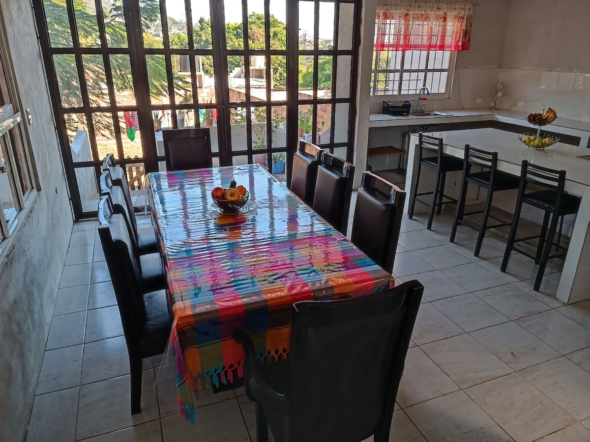 Preciosa y amplia Casa en una Loma de la Capital donde puedes ver hermosos atardeceres y contemplar el cañon del sumidero. La terraza es fresca y amplia, los atardeceres inolvidables, super bien para una fiesta con amigos y familiares. Muy cerca del libramiento y de plazas y mercados. Completamente equipada para una experiencia de descanso.