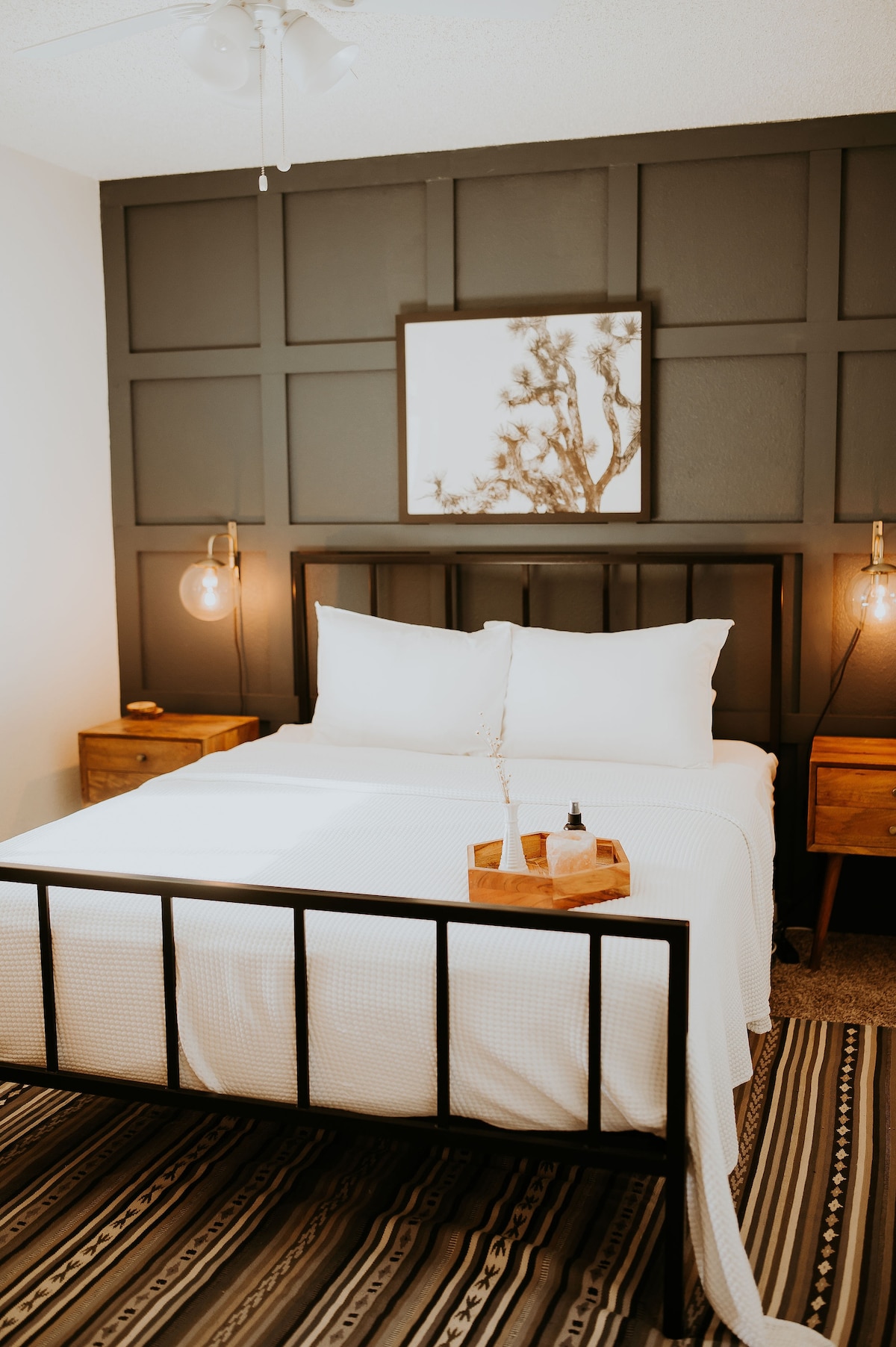SMOKETREE Palm: Terletak di kaki bukit Taman Negara Joshua Tree, rumah padang pasir bergaya ini merupakan tempat persembunyian yang damai yang direka untuk keselesaan & pelarian bandar. • Kolam renang koboi 8 kaki • Tab mandi air panas dengan cahaya lembut dan tenang daripada lampu berderet • Lounge pawagam luar • Lubang api untuk memerhati bintang • 8 minit ke pintu masuk taman • 2 bilik tidur • 2 bilik mandi (lihat penyenaraian 3 katil jika perlu) • Wi-Fi ultra pantas + ruang kerja khusus • Dapur lengkap + gril BBQ • Halaman berpagar mesra haiwan peliharaan dan kanak-kanak