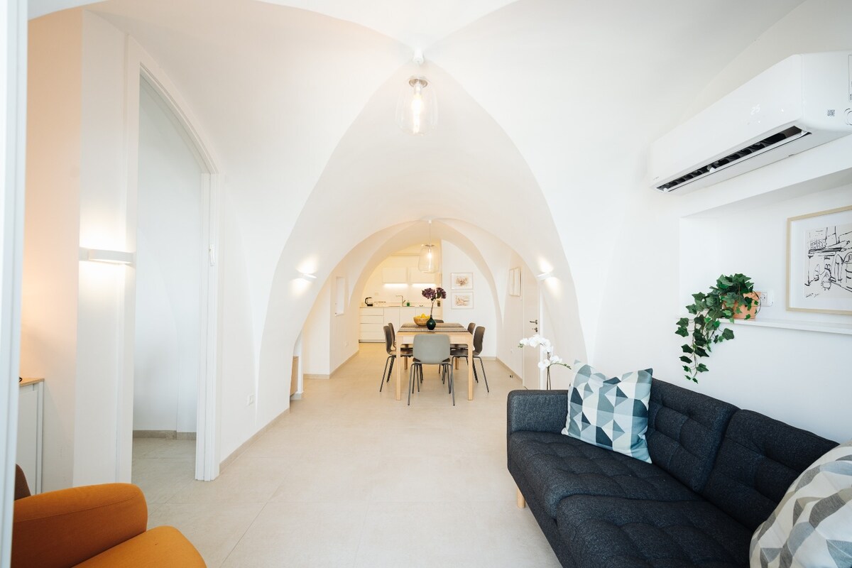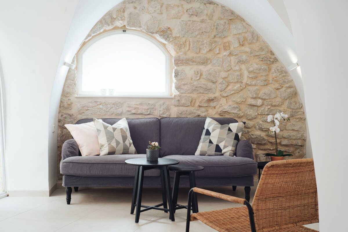 In the heart of Safed’s Old City, among its magical stone alleyways and unique atmosphere, lies Hakhel Tapuchin 1, one of the special gems of Yehallomim Ba’Simta. The unit is located in a quiet spot, just a short walk from the ancient synagogues, galleries, and main sites of the Old City.