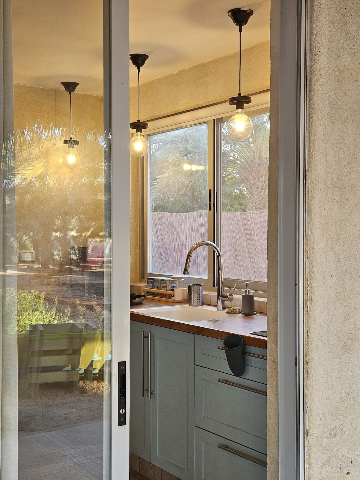 Unit padang pasir yang indah, baru dan manis dengan pintu masuk berasingan, halaman persendirian dan selesa dengan pergola, ruang duduk yang selesa dan katil herba. Tzivit selesa dan cantik dua bilik. Satu ialah bilik tidur dengan plaster mineral dan tingkap besar yang menghadap halaman persendirian dan ruang tamu lain dan dapur yang juga mempunyai dua tingkap dan ia terbuka ke halaman. Unit ini dibarisi dengan lantai batu yang indah dan dihiasi dengan tingkap berwarna teal. Tandas selesa dan pancuran mandian memanjakan. Unit ini terletak berhampiran dengan perkampungan tukang Tzukim dan dalam jarak berjalan kaki dari jalan kaki padang pasir yang tenang. Lokasi kami membolehkan percutian yang unik dan damai tetapi juga pilihan untuk turun ke Eilat untuk perjalanan sehari