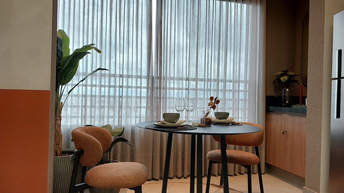 Studio Duna oferece cozinha equipada com cápsulas de café como mimo, sala com SmartTV e ar-condicionado, banheiro completo e quarto com cama de casal. Ideal para até 3 hóspedes com enxoval completo incluso, cada detalhe foi pensado para que você se sinta em casa, ou melhor, em um lar com toque de hotel boutique. Localização excelente: 3 min da UFU, 5 min do Center Shopping e perto das avenidas Rondon Pacheco e João Naves. Check-in digital e vaga de garagem.