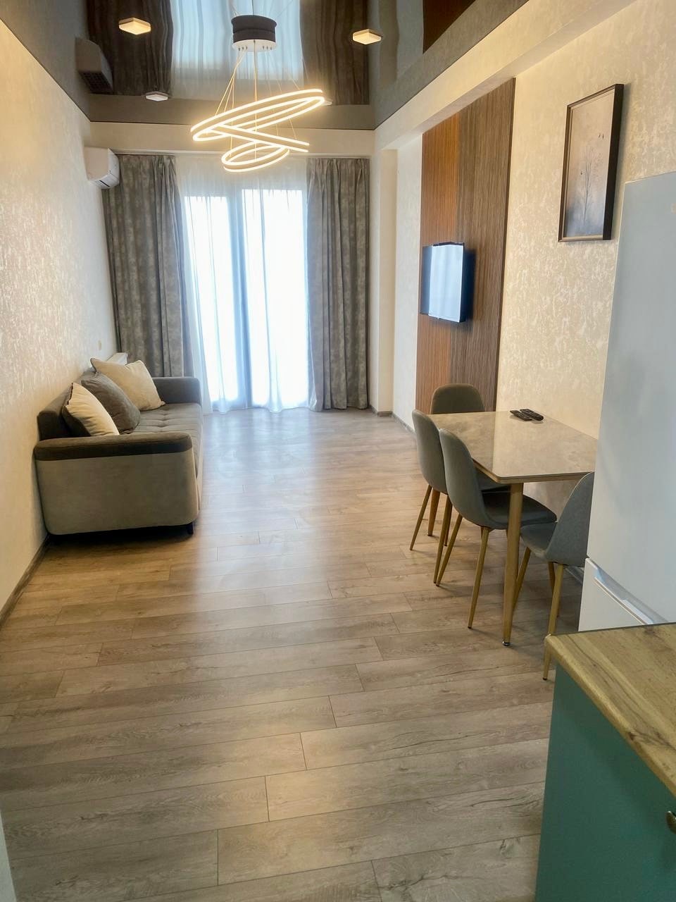 Welcome to our stylish and fully renovated studio apartment, perfect for 1–2 guests. Inside the apartment: • 1 bedroom with a double bed • Modern bathroom with shower • Comfortable sofa • TV and Wi-Fi • Fully equipped kitchen with all necessary dishes and utensils Nearby: • Mall and shops within walking distance • Gas station close by This studio combines modern design, comfort, and a convenient location, ideal for couples or solo travelers looking for a cozy stay in Rustavi.