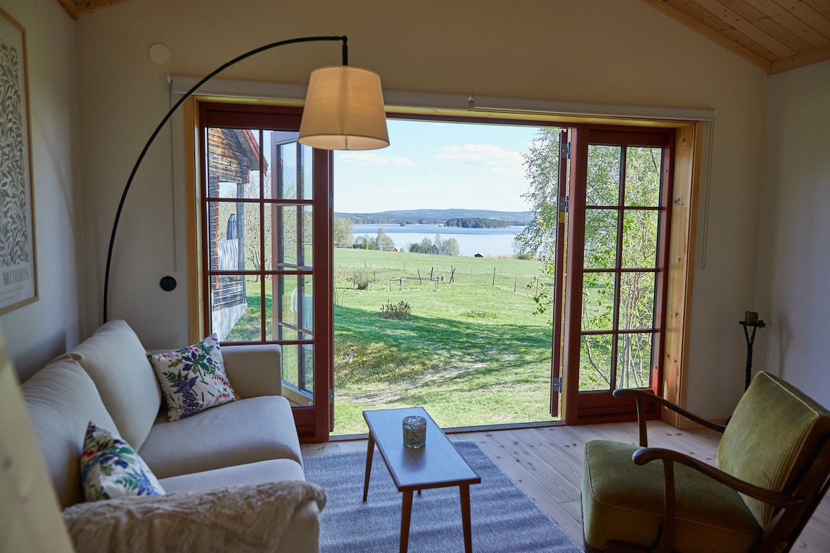 Slappna av i detta unika och lugna boende med personlig inredning i Dalastil. Stugan ligger med fantastisk utsikt över Siljan. På gården bor värdparet i hus och det finns en stor trädgård som ger avskildhet. I boendet ingår toalett, dusch, bastu, kolgrill och utemöbler. Det finns en dubbelsäng i separat sovrum och bäddsoffa med två bäddar i vardagsrummet. Städning ingår inte i priset och ska göras före utcheckning.