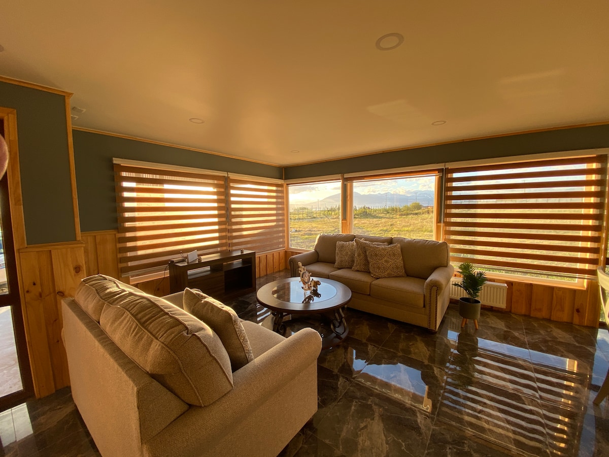 Kabin yang selesa, ruang besar yang terletak di kawasan luar bandar di pintu masuk bandar Puerto Natales, dengan pemandangan istimewa fjord Ultima Esperanza, sesuai untuk berehat dan berehat; penumpang akan mempunyai hubungan langsung dengan Alam Semula Jadi dan boleh menikmati pada musim panas, buah tipikal kawasan kami, pakal, melihat burung dan fauna biasa di rantau ini. 5 minit memandu dan 30 minit berjalan kaki ke bandar, dengan pemandangan indah dalam lawatan anda.