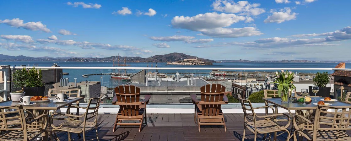 Steps from San Francisco’s vibrant Union Square, The Marker blends over a century of hospitality with modern elegance. This boutique Beaux-Arts hotel offers curated amenities like PATH water bottles, FloWater stations, and a 24- hour state-of-the-art fitness center. Dine at Tratto, serving rustic Italian dishes and craft cocktails. With concierge service, curbside valet parking, and California Green Lodging certification, The Marker pairs timeless charm with contemporary comfort.