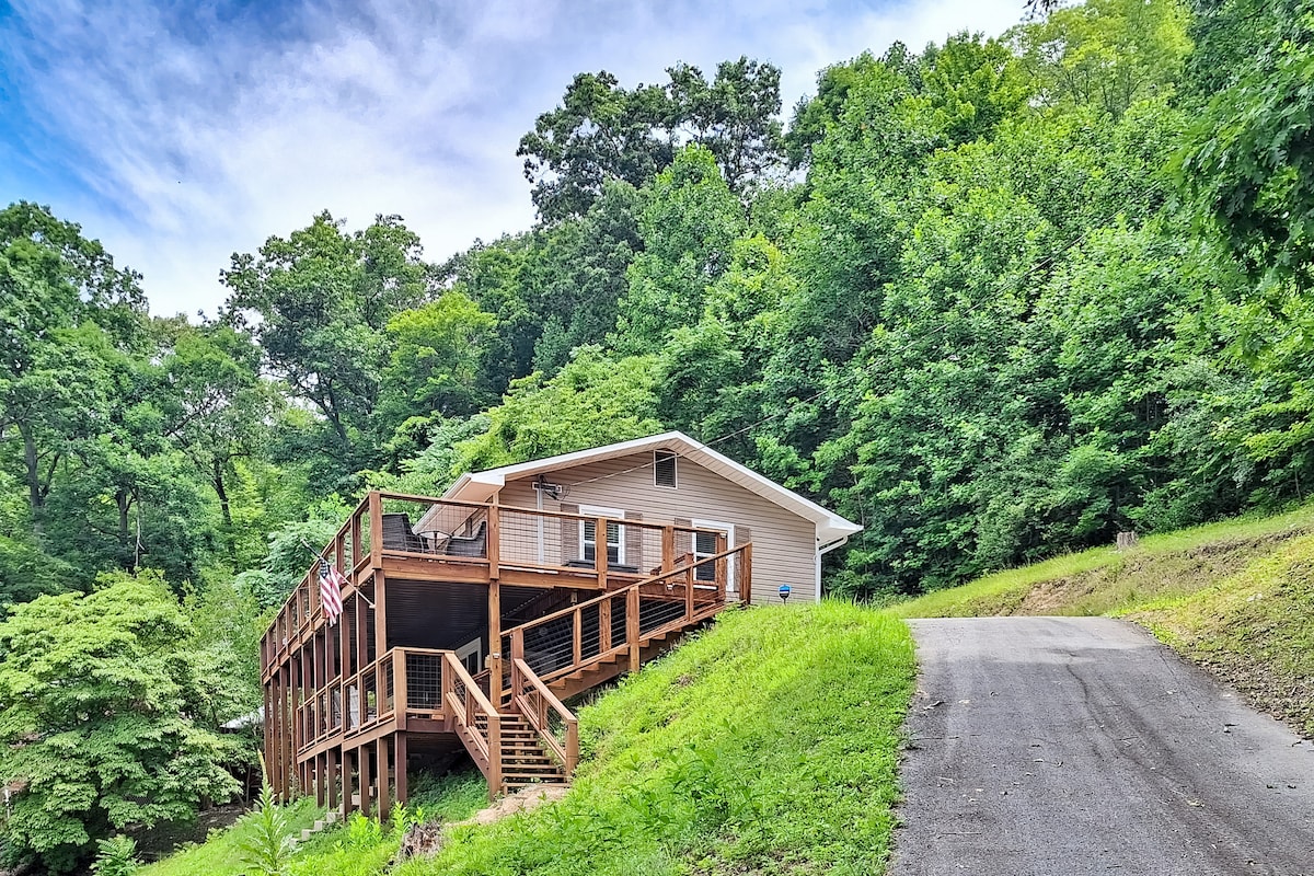 ISOLATION VACATION! Majestic Lakeside Slip-Away with covered dock and nearby launch Recently updated home offering your family and guests more accommodations & entertainment. Welcome to this outstanding vacation property resting on scenic Norris Lake near the Cumberland Mountains for vacations, getaways, weddings, honeymoons, reunions etc. Great location! Quality Amenities, easy & fast access to Norris Lake & ATV Trails. Free launch & very gentle across road slope to dock.