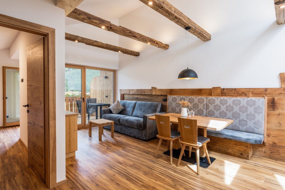 Berikut adalah apartmen yang baru dilengkapi dan diubahsuai dengan kawasan kesejahteraan yang besar. Apartmen 2 bilik dibahagikan kepada bilik tidur dengan katil double, ruang tamu makan dengan katil sofa untuk 2 orang dan dapur lengkap. Tempat letak kenderaan yang dilindungi tersedia untuk kereta anda. Balkoni besar menghadap selatan menawarkan anda pemandangan Lembah Gsieser yang romantik serta kaki bukit Dolomites. Wi-Fi dan kotak Bluetooth juga sedia membantu anda.