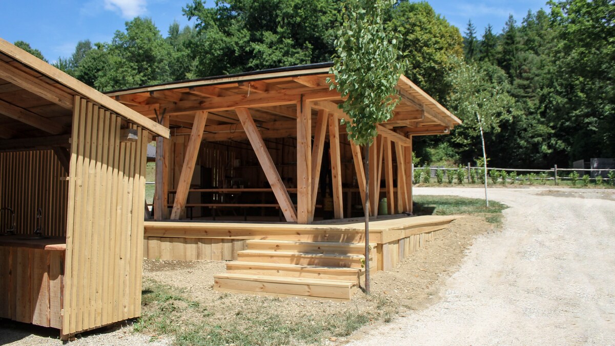 Lawati kami dalam perkhemahan mewah kayu yang menawan di Davča berhampiran Škofja Loka, yang merupakan sebahagian daripada perkhemahan mewah yang indah. Kami boleh menampung hingga 2 orang dan merupakan pengalaman yang hebat untuk pasangan, dan rakan-rakan. Terletak betul-betul di atas Železniki, dengan pemandangan panorama yang menakjubkan, menggabungkan keselesaan moden dengan pesona desa. Teres, taman hijau, padang rumput, dan tasik menjemput anda untuk bersosial di luar, itulah sebabnya ia merupakan tempat tulen yang ideal untuk pengalaman dan mencipta kenangan di salah satu tempat yang paling bersih di Slovenia.