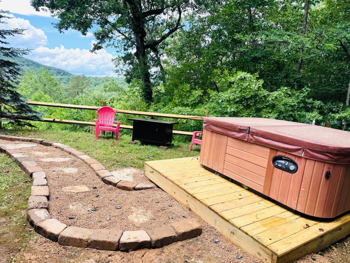Tiny House Living! Rumah kecil ini termasuk katil kelamin, TV skrin rata 50”, peti sejuk kecil, ketuhar gelombang mikro, mesin cawan k, bilik mandi kecil penuh dengan pancuran mandi dan sudut bacaan loteng. Di luar anda akan menemui 6 ekar untuk berkeliaran, tab mandi air panas dua orang, gril arang, lubang api dan air terjun kecil dengan anjung. Lil Red Tiny House terletak kira-kira 30 kaki di belakang rumah lain yang tidak diduduki buat masa ini. Sila ambil perhatian: kamera luar mampu merakam.