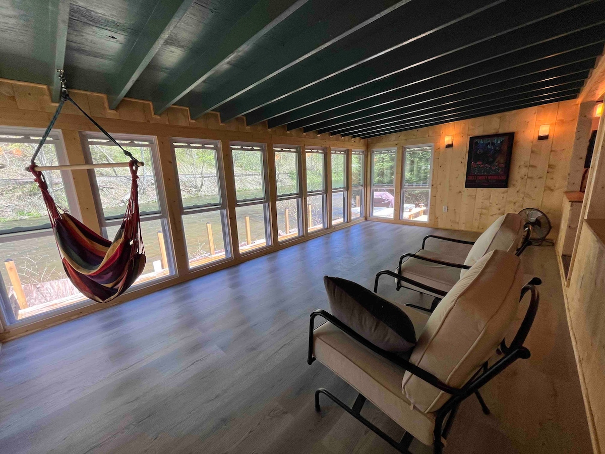 Bercuti ke percutian kami yang tenang seluas 6.5 ekar di Hutan Negeri DuPont! Sesuai untuk penunggang motosikal & pengembara berjalan kaki, kediaman yang diubah suai ini boleh memuatkan 5 orang dengan selesa. Nikmati dapur yang serba lengkap, dapur kayu yang selesa dan dek besar berbumbung dengan pemanggang. Garaj khusus dengan tempat letak basikal menjadikan tempat ini kem induk terbaik untuk meneroka Brevard dan Pisgah. Tersembunyi berhampiran Sky Valley Road, alami ketenangan yang damai dengan akses mudah ke laluan pejalan kaki bertaraf dunia.