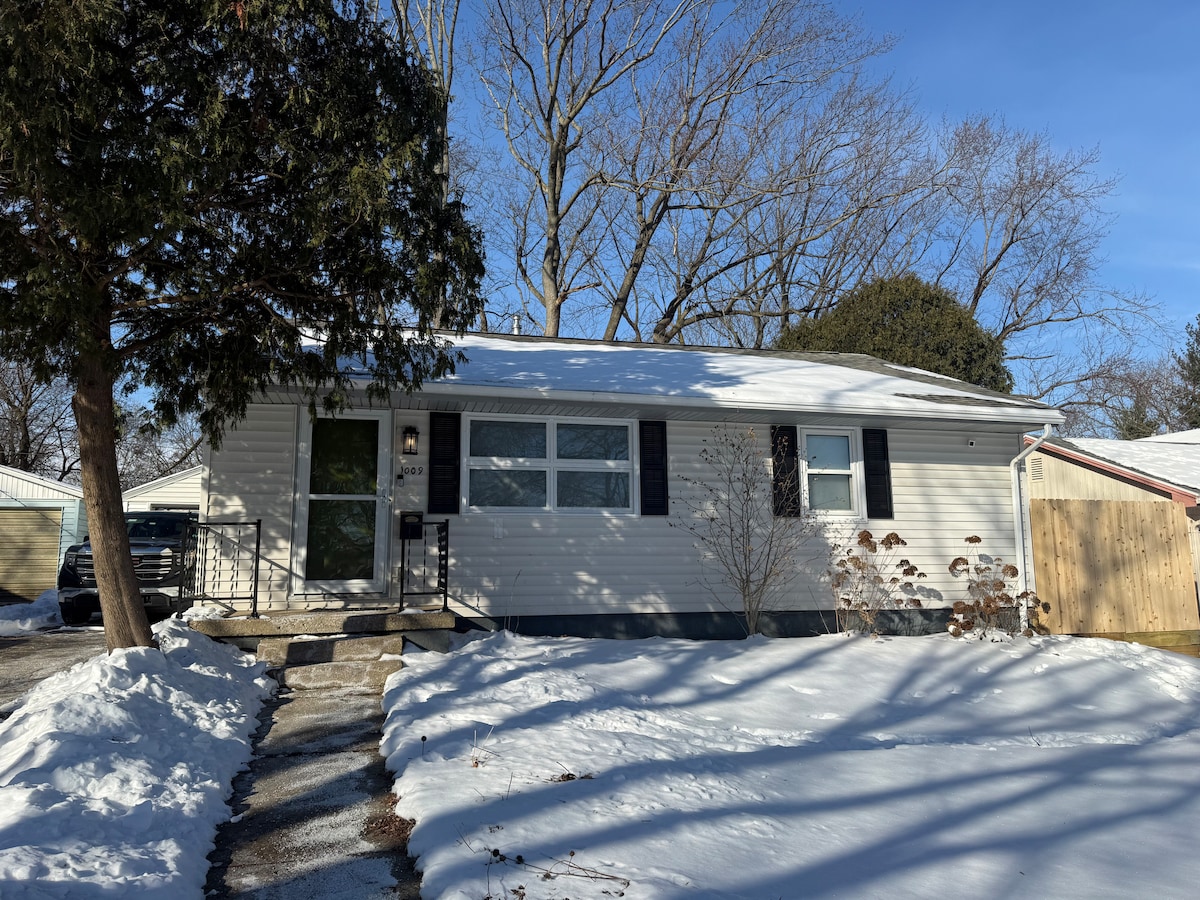 Banglo 2KT kami di Pusat Bandar Urbana dengan 1GB Wifi baru diubahsuai + sesuai untuk keluarga, pasangan, dan pengembara jangka panjang yang ingin berada berhampiran dengan pusat semuanya dengan Superhost. Halaman belakang yang besar dengan firepit juga! Terletak dengan mudah beberapa blok dari pusat bandar Urbana, ia adalah tempat yang selesa dan mudah apabila melawat University of Illinois, tailgating, melihat pesta, atau hanya meluangkan sedikit masa. Kami dalam jarak 5 minit berjalan kaki dari pusat bandar + 8 minit memandu ke kampus UIUC.